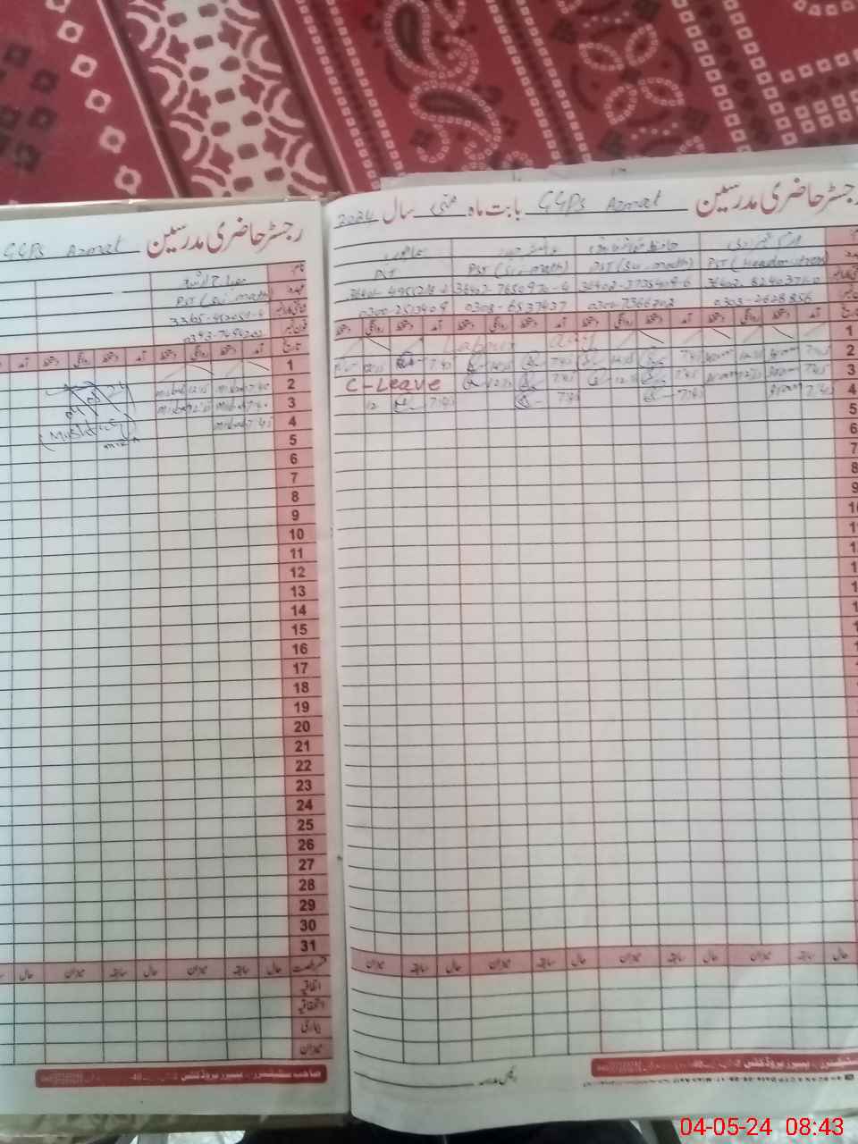 | Name: IR**** SH**** Designation: (School Headmaster's/Headmistress's) PST Phone/Cell Number: 03**** |