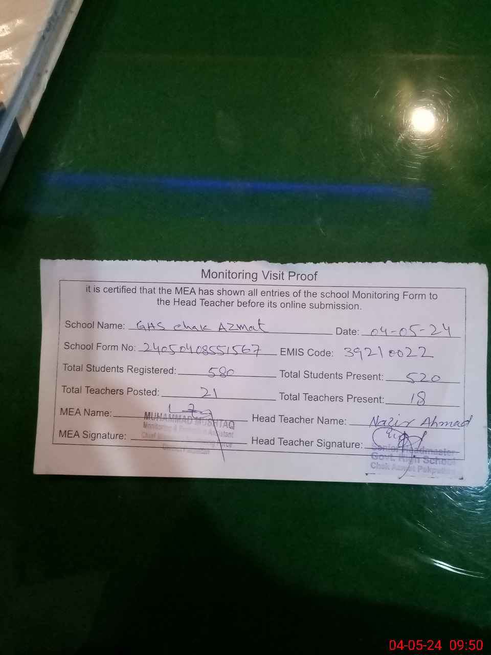 | EMIS Code: 39210022 | Name of School: GHS CHAK AZMAT | |||