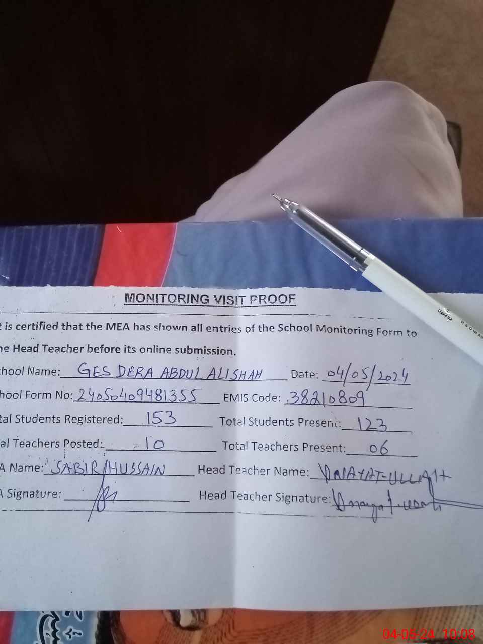 | EMIS Code: 38210809 | Name of School: GES DERA ABDUL ALI SHAH MOHIB PUR | |||