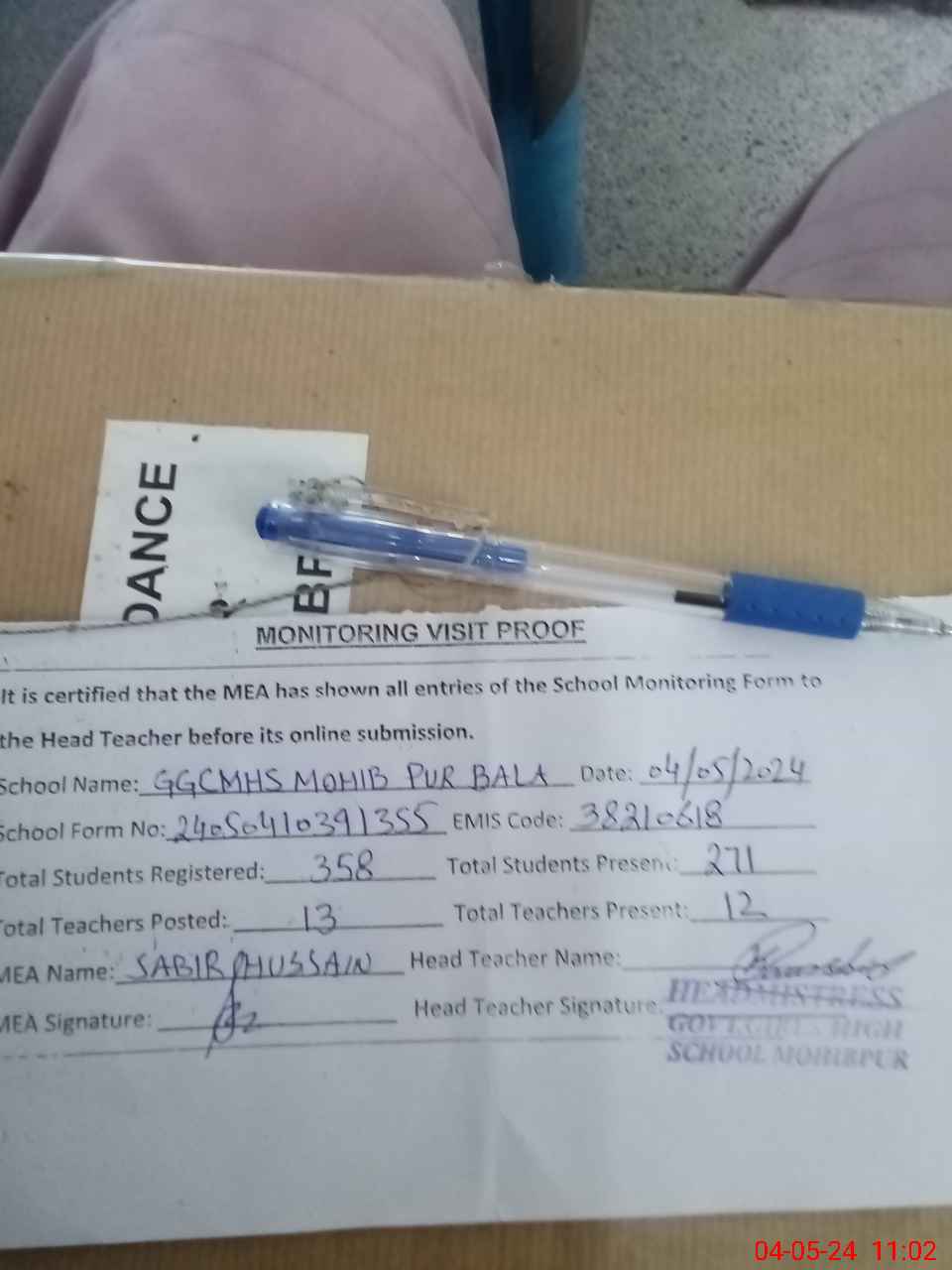 | EMIS Code: 38210618 | Name of School: GGCMHS MOHIB PUR BALA | |||