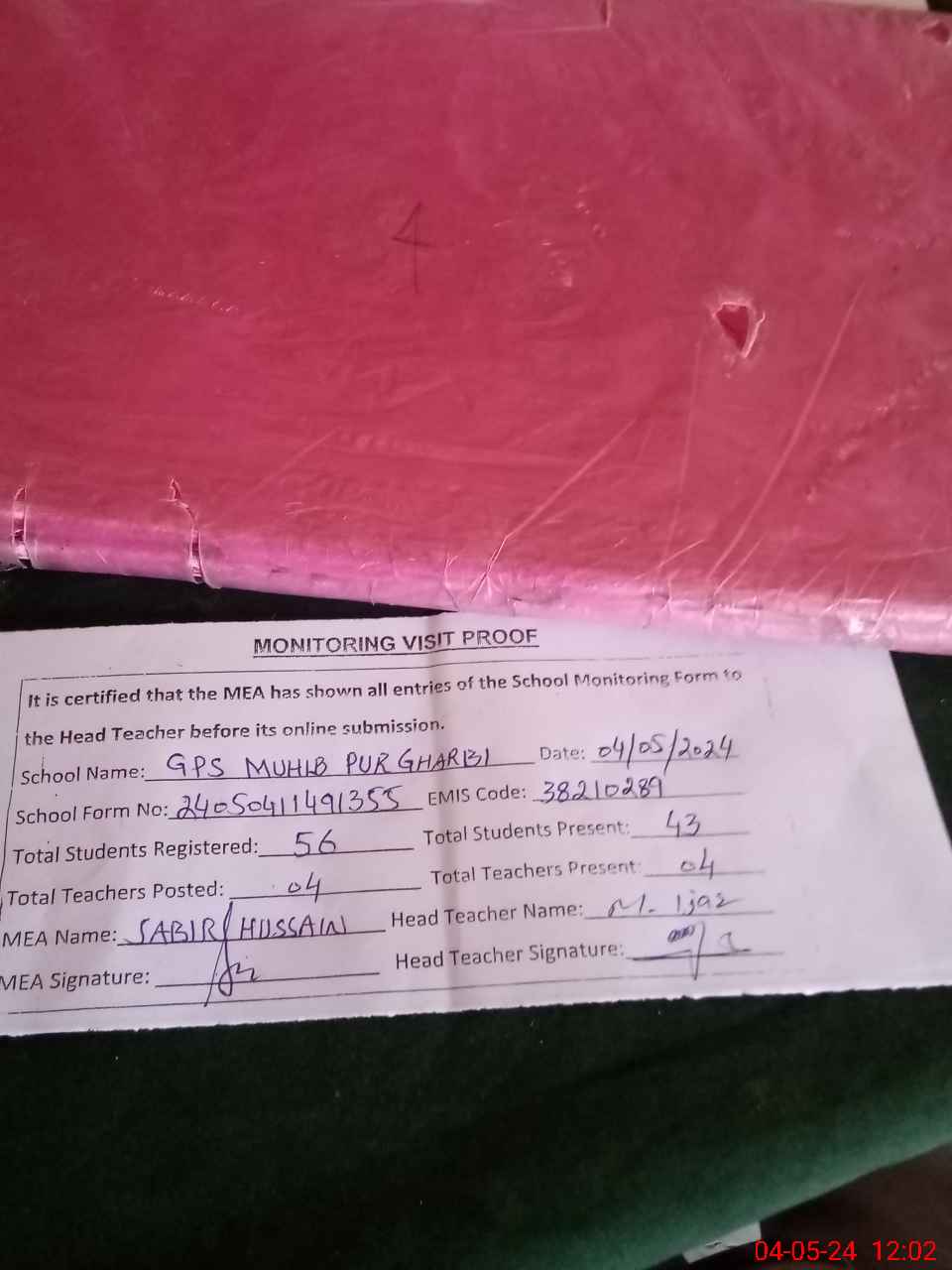 | EMIS Code: 38210289 | Name of School: GPS MUHIB PUR GHARBI | |||