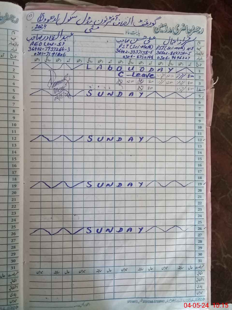 | Name: Mu**** Sa**** Iq**** Designation: (School Headmaster's/Headmistress's) PST Phone/Cell Number: 03**** |