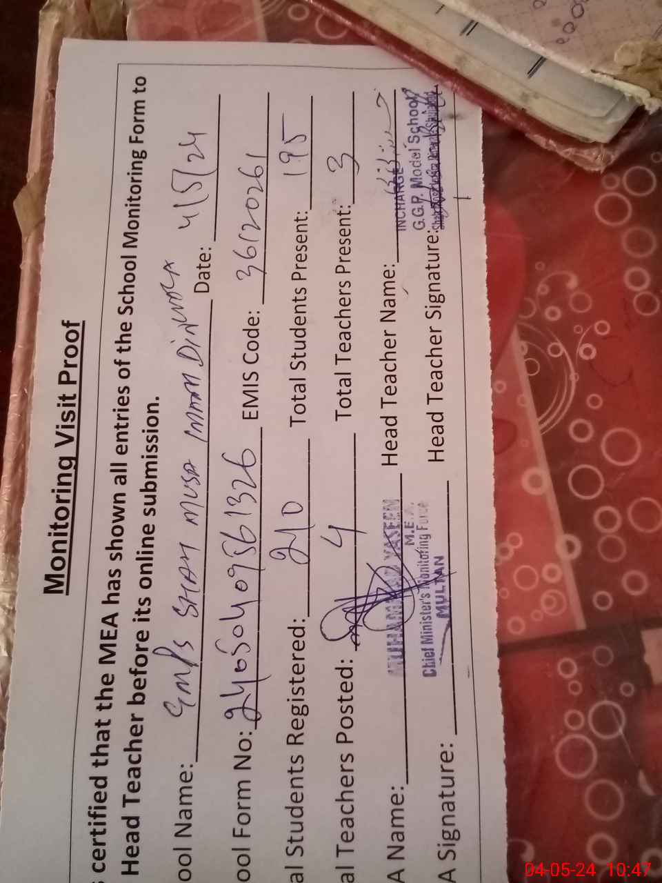 | EMIS Code: 36120261 | Name of School: GMPS SHAH MUSA (IMAM DIN WALA) SHUJABAD | |||