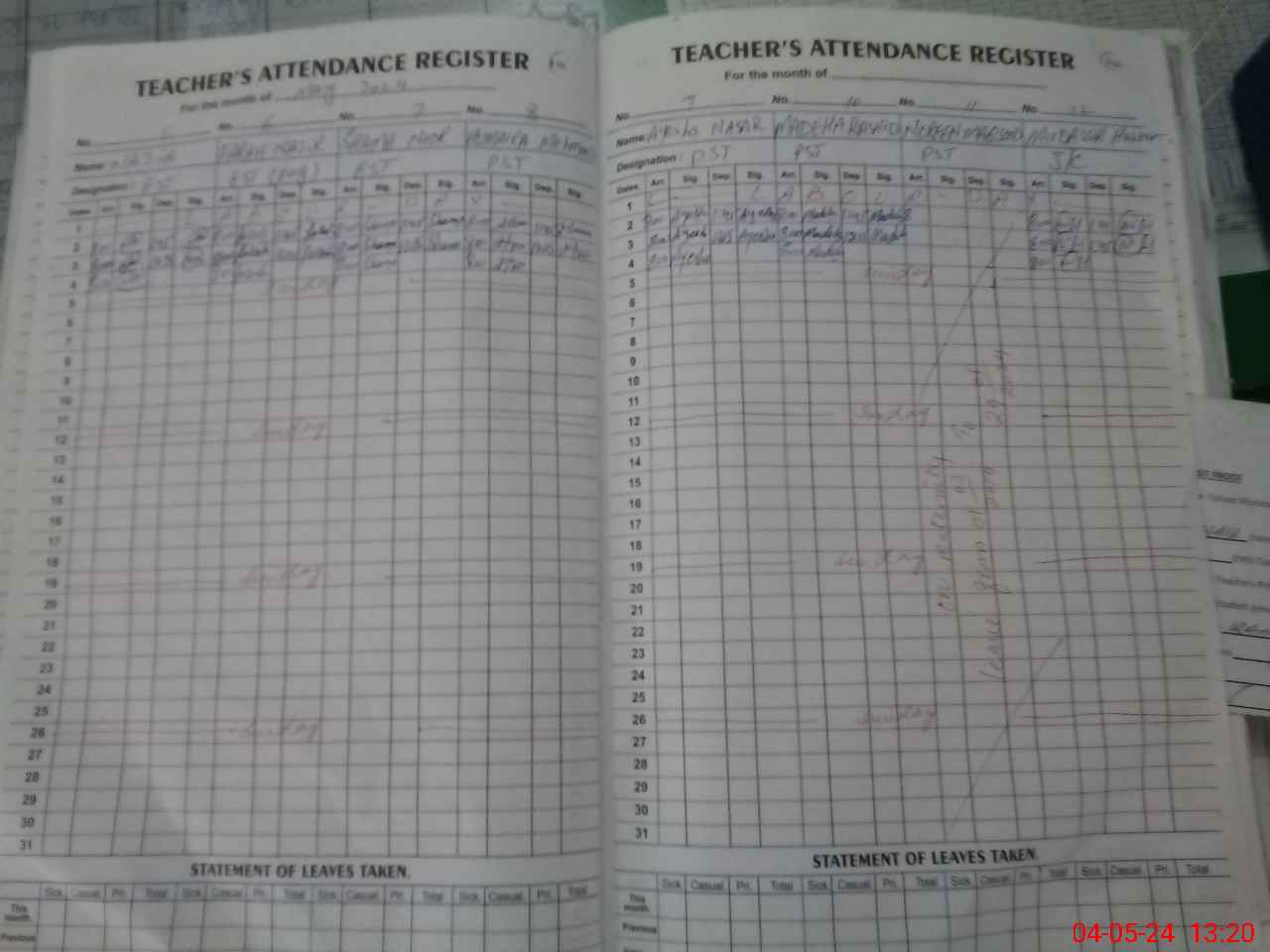 | Leave | Duty | Absent | Maternity | Medical | Ex- Pak |