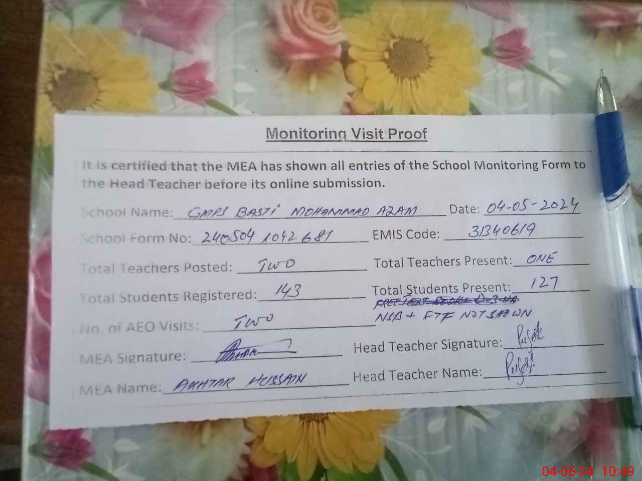 | EMIS Code: 31340619 | Name of School: GMPS BASTI MUHAMMAD AZAM | |||