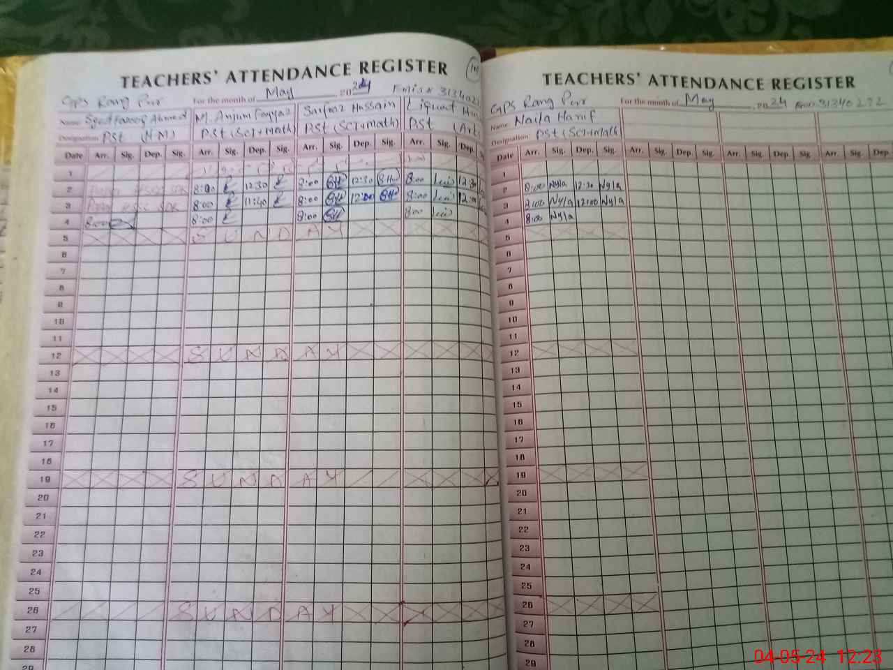 | CNIC | Full Name | Designation | R/C | Absence During Last Calender Month |