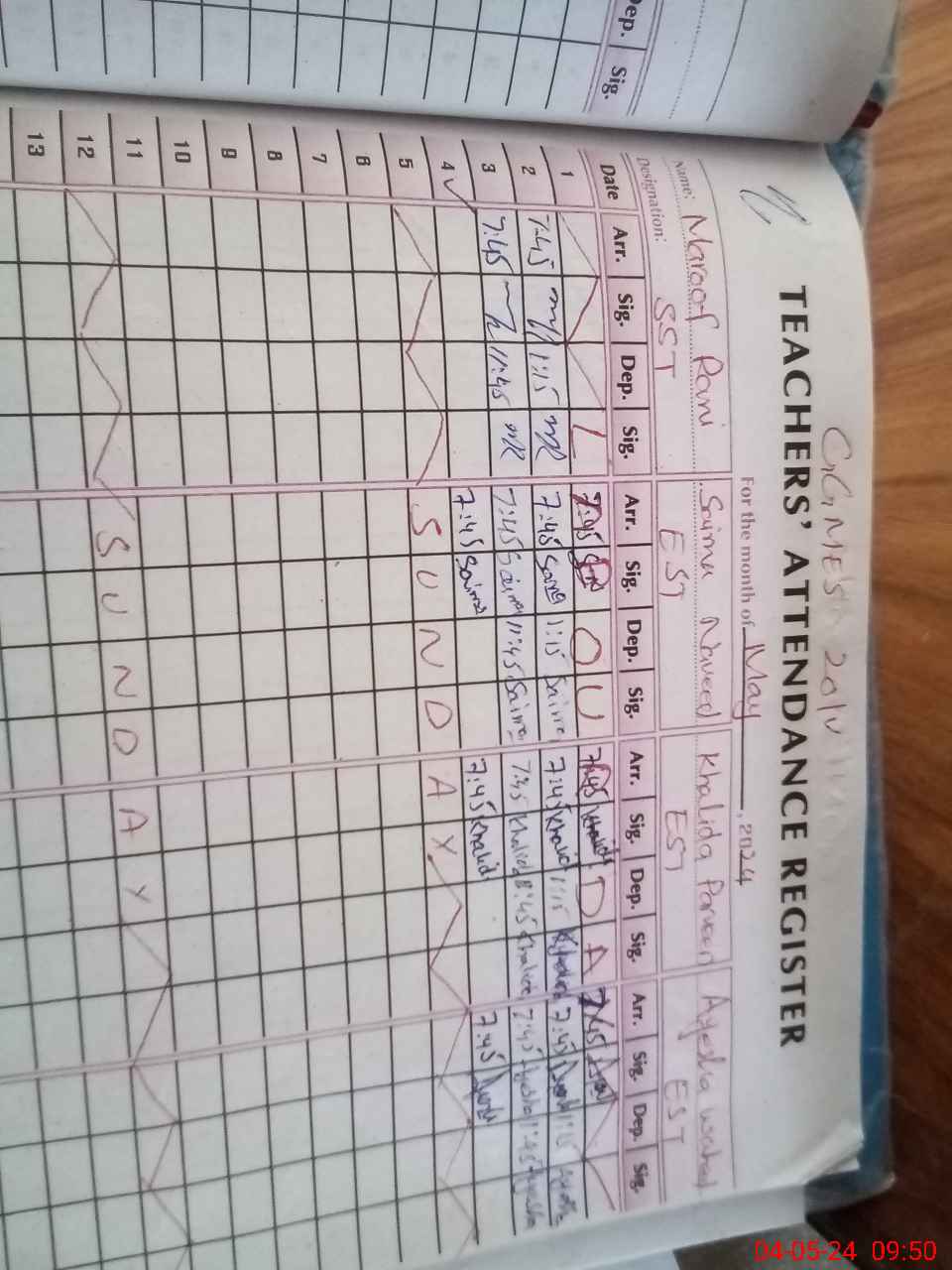 | Remarks (Use Separate Page if Required): Note HEAD TEACHER MAROOF RANI SST FOUND ABSENT NO AEO VISIT IN THE MONTH OF APRIL 2024 NSB AND FTF RECORD NOT PROVIDED | |||||