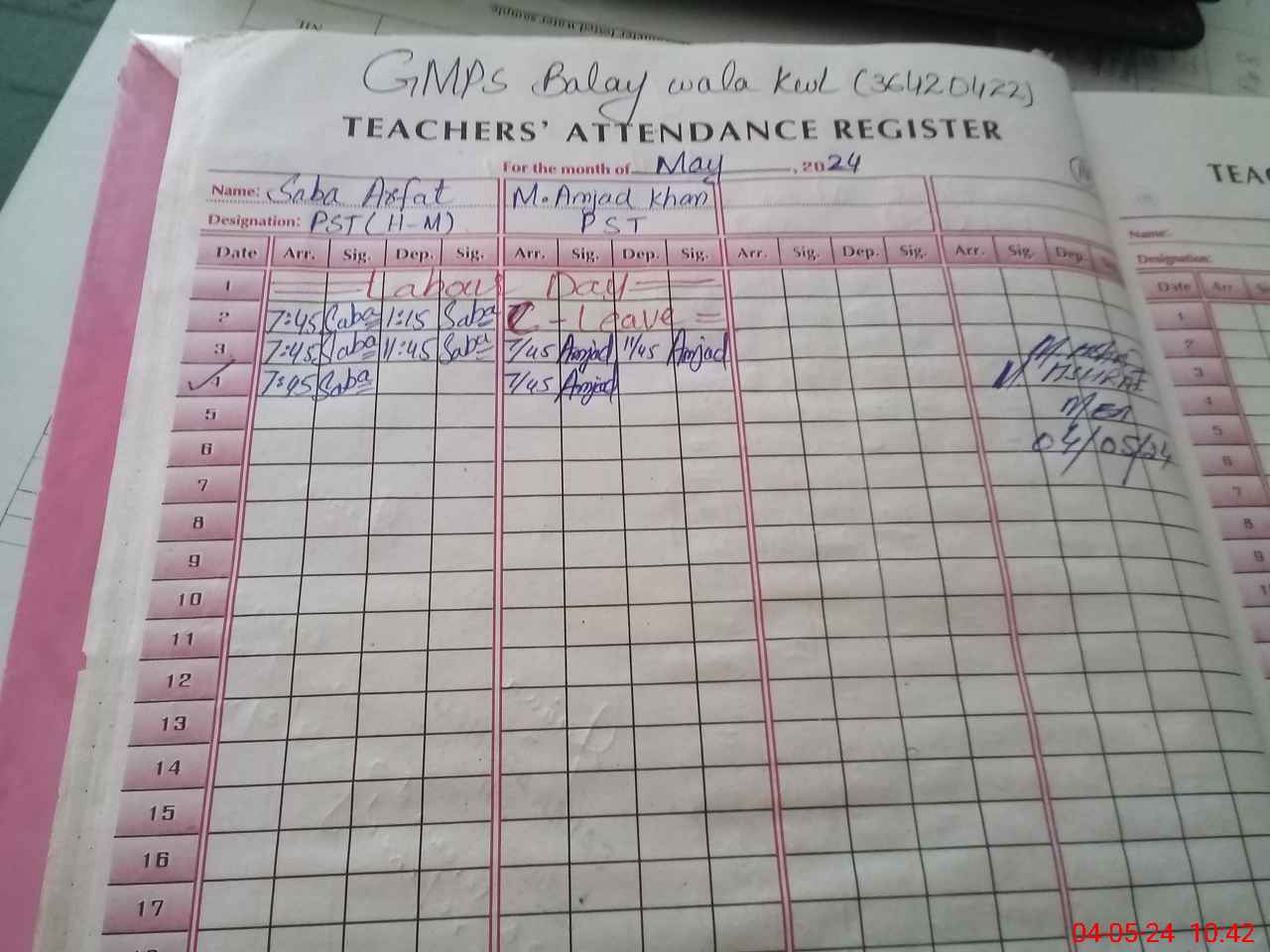 | EMIS Code: 36420422 | Name of School: GMPS BALAY WALA, KHANEWAL | |||