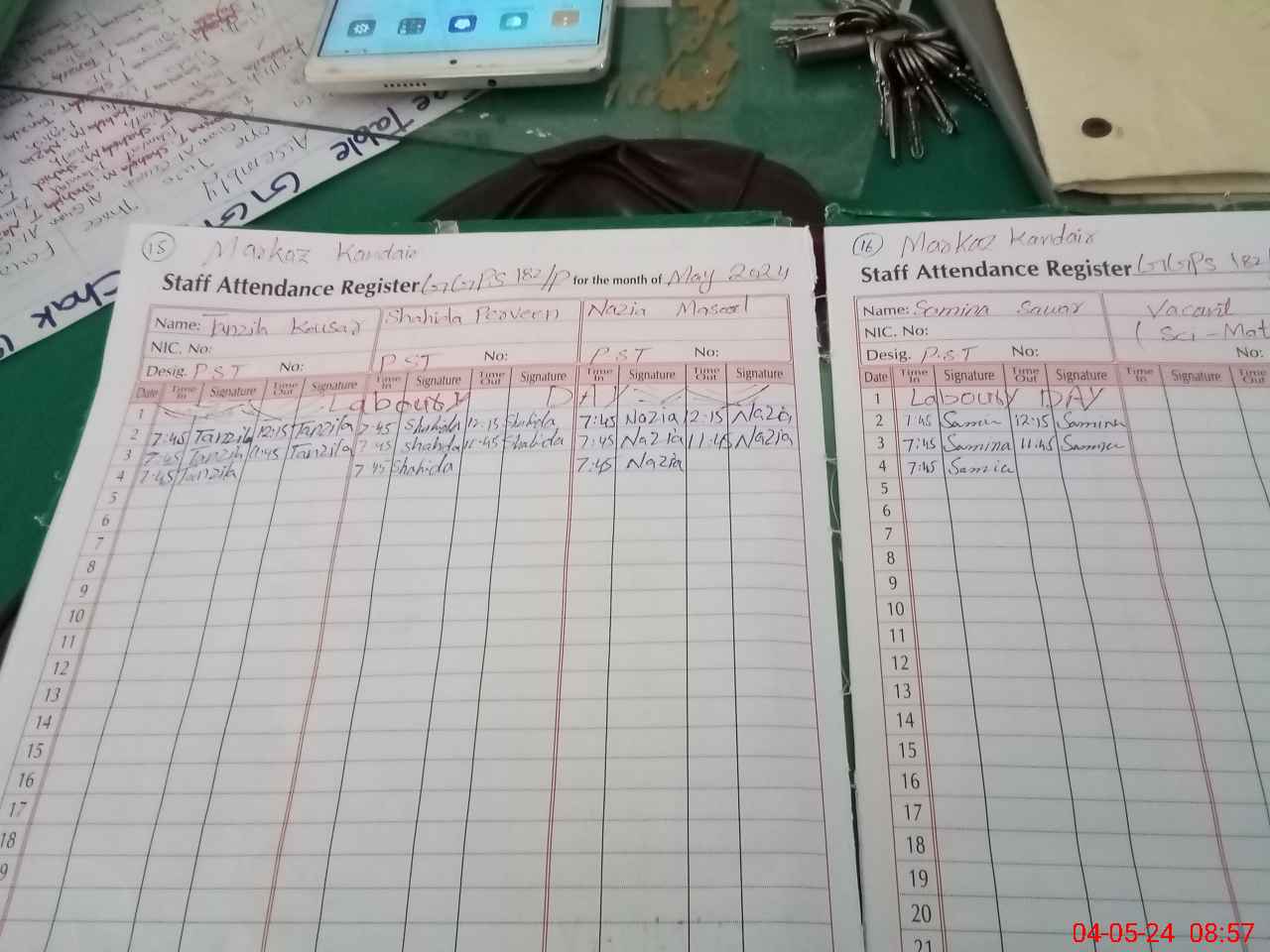 | CNIC | Full Name | Designation | R/C | Absence During Last Calender Month |