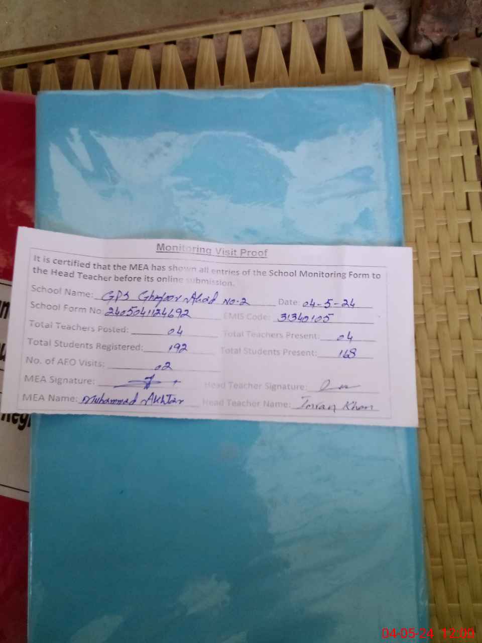 | EMIS Code: 31340105 | Name of School: GPS GHAFOOR A SADIQABAD NO.2 | |||