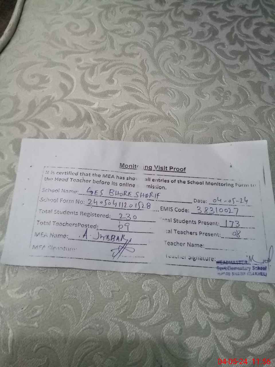 | EMIS Code: 38310027 | Name of School: GES BHORE SHARIF | |||