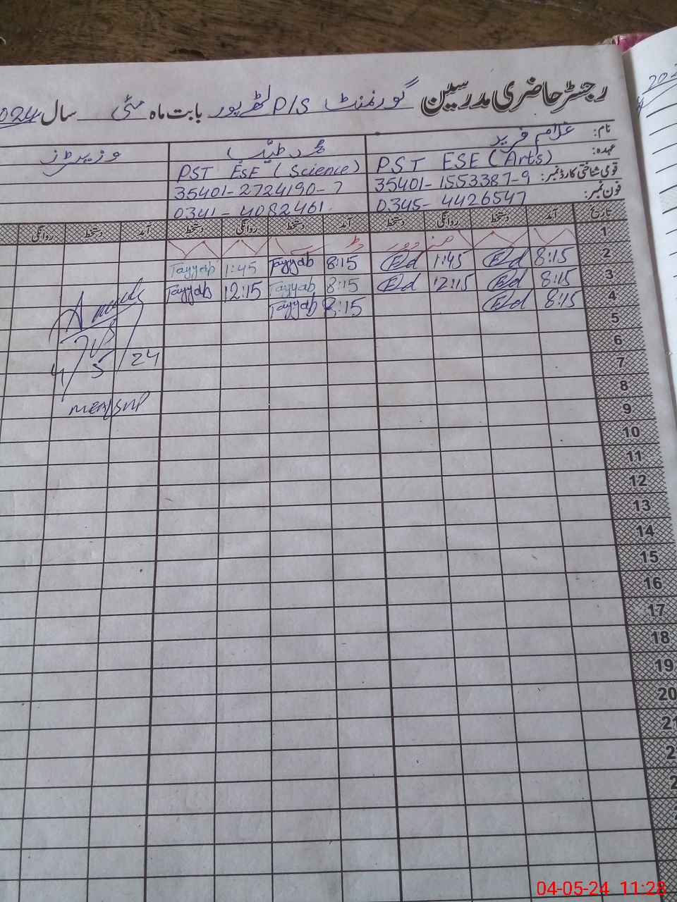 | CNIC | Full Name | Designation | R/C | Absence During Last Calender Month |