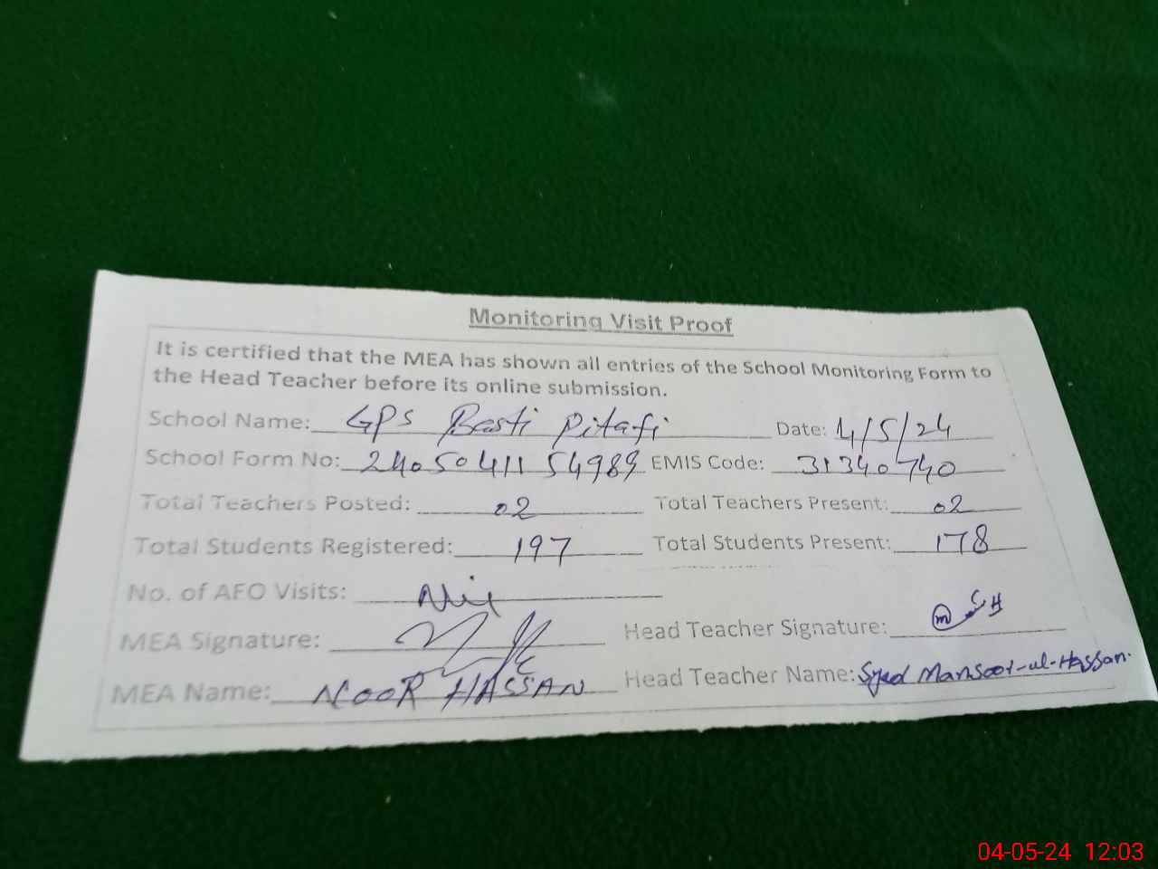 | EMIS Code: 31340740 | Name of School: GPS BASTI PATAFI | |||