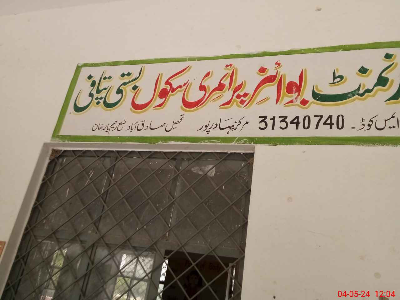 | District: RAHIMYAR KHAN | Tehsil: SADIQABAD | Markaz: BAHADAR PUR-MALE | Level: Primary | |