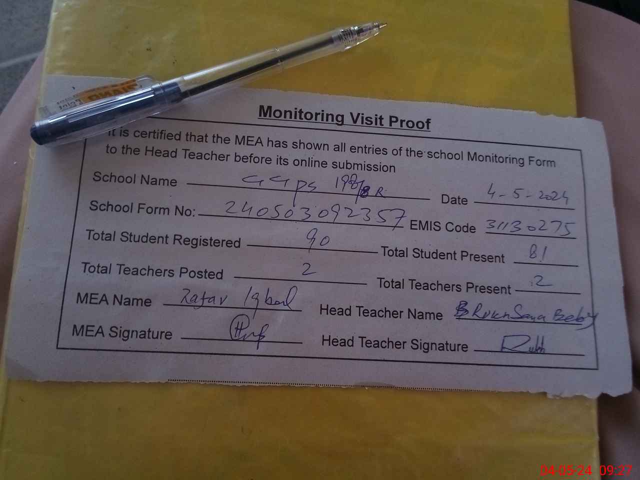 | EMIS Code: 31130275 | Name of School: GGPS CHAK NO 198 8R | |||