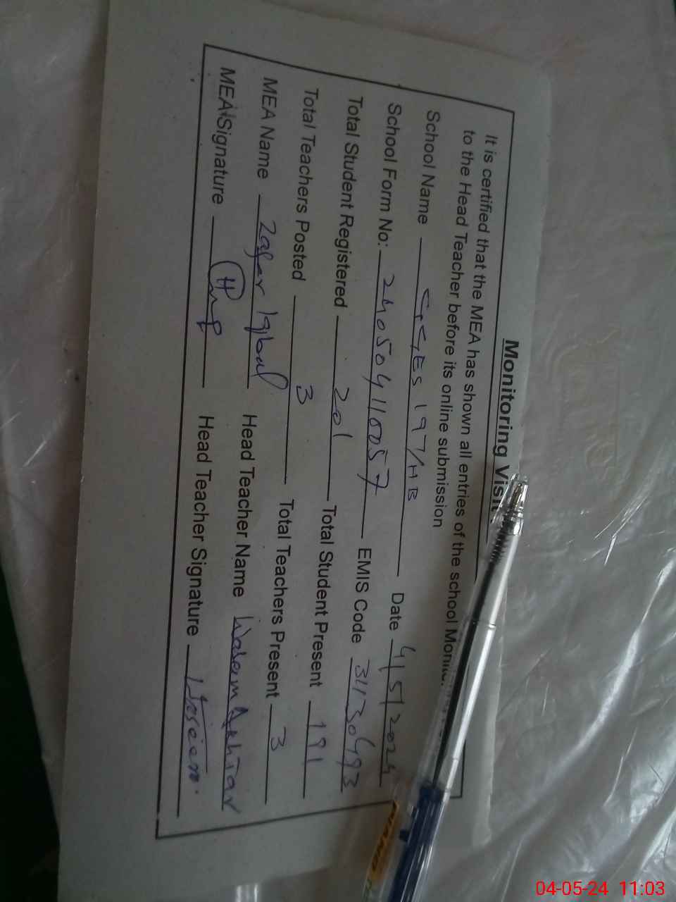 | EMIS Code: 31130493 | Name of School: GGES CHAK NO. 197/HB | |||