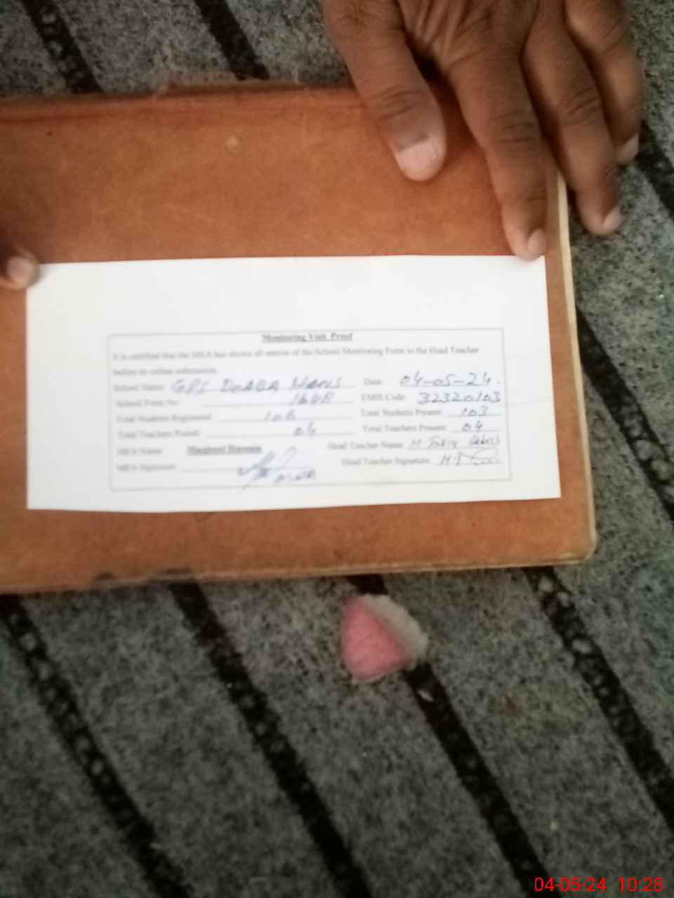 | Certified that this School was Inspected by the Undersigned MEA/DMO Today and the Information Stated Above is as Per Record. | |||||