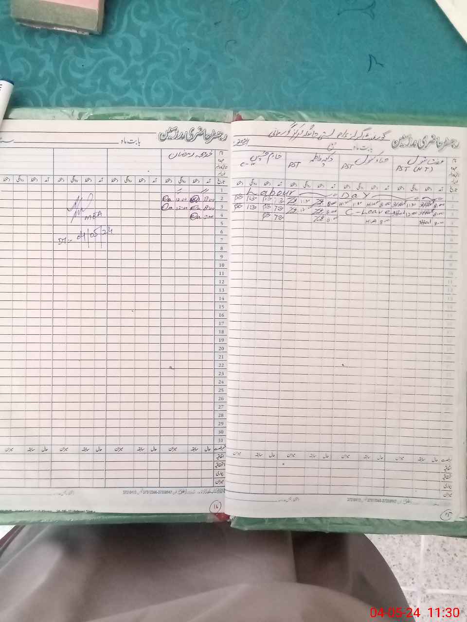 | CNIC | Full Name | Designation | R/C | Absence During Last Calender Month |