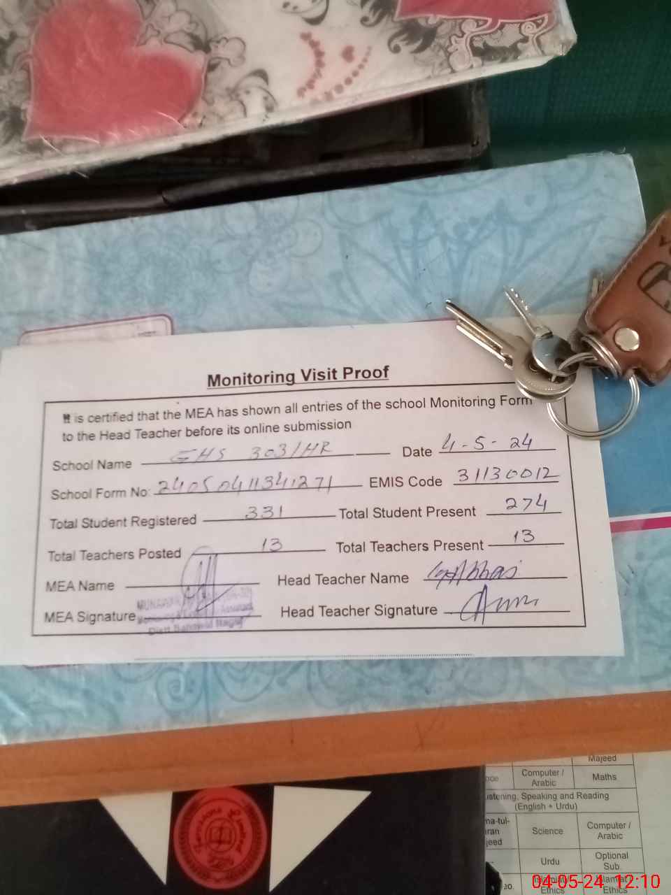 | EMIS Code: 31130012 | Name of School: GHS CHAK 303/HR | |||