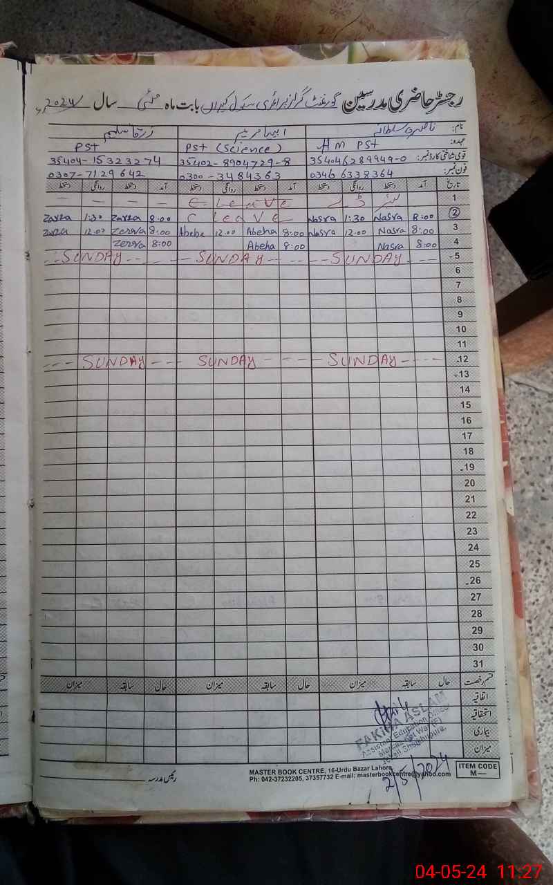 | Name: Na**** Su**** Designation: (School Headmaster's/Headmistress's) PST Phone/Cell Number: 03**** |