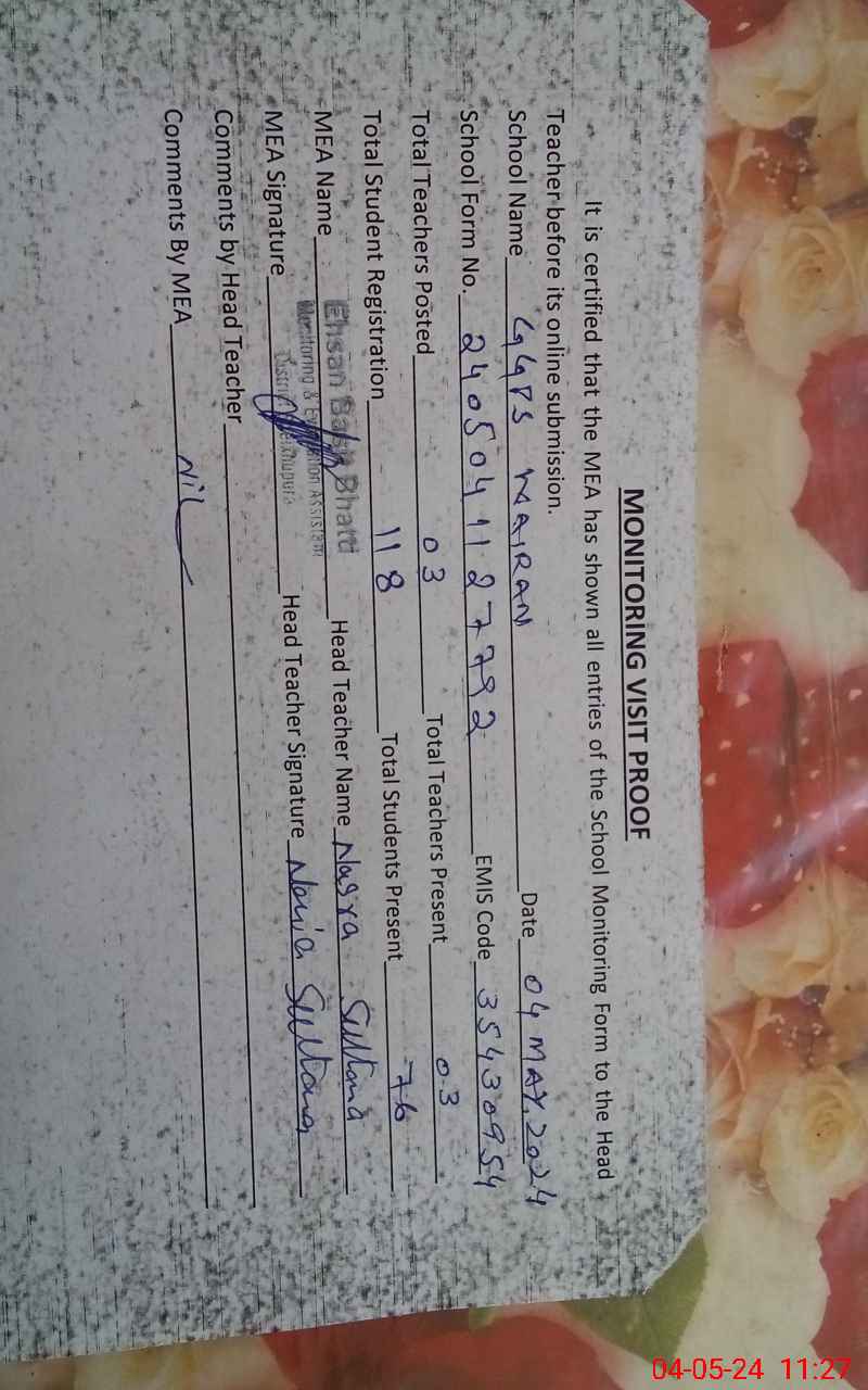 | EMIS Code: 35430954 | Name of School: GGPS KAIRAN | |||