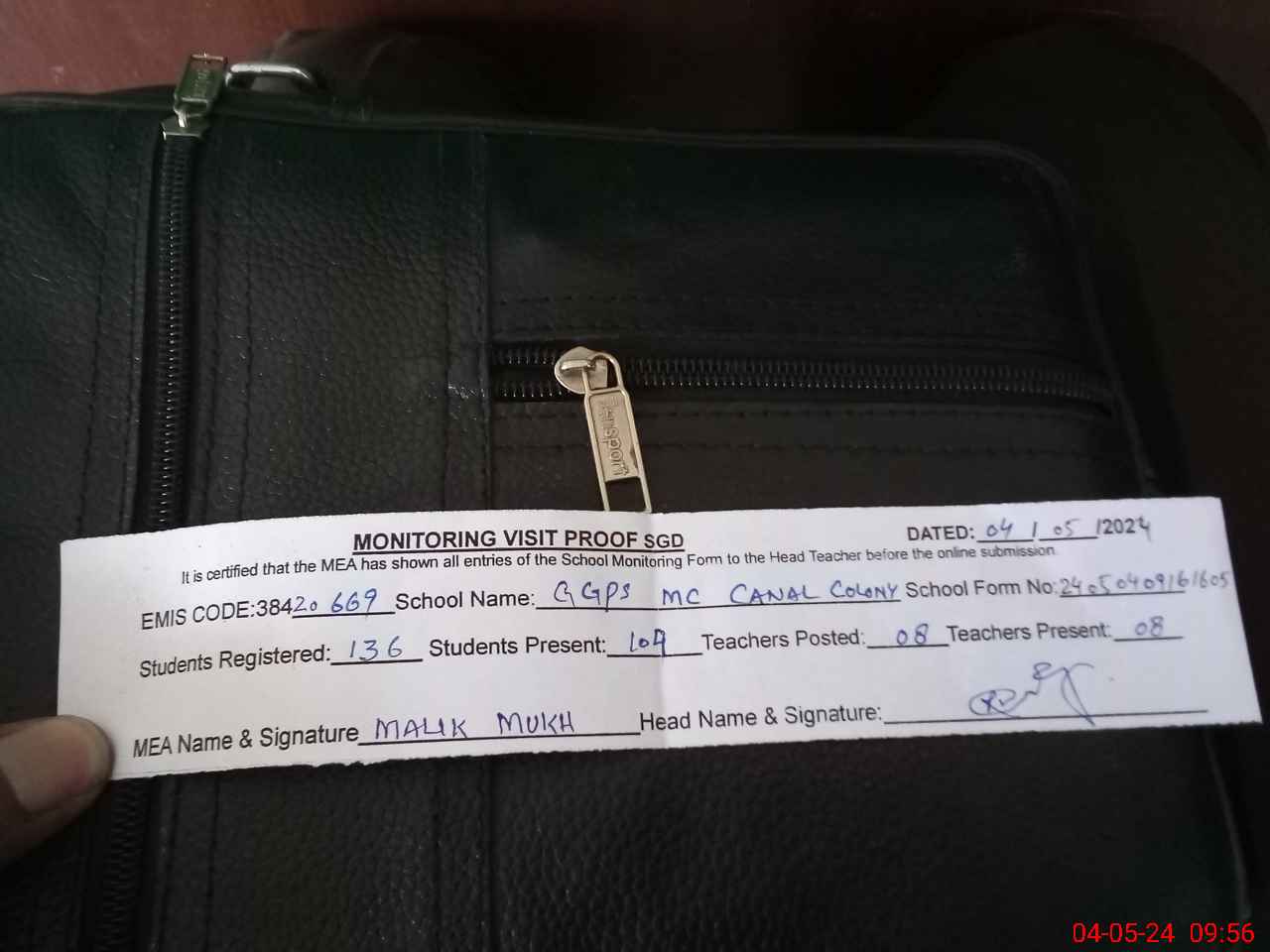| Attendance Register | Head Teacher | MEA with School | Visit Proof |