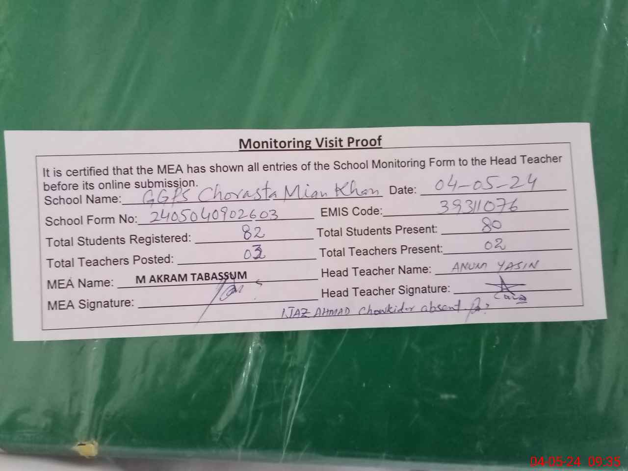 | EMIS Code: 39311076 | Name of School: GGPS CHORASTA MIAN KHAN | |||