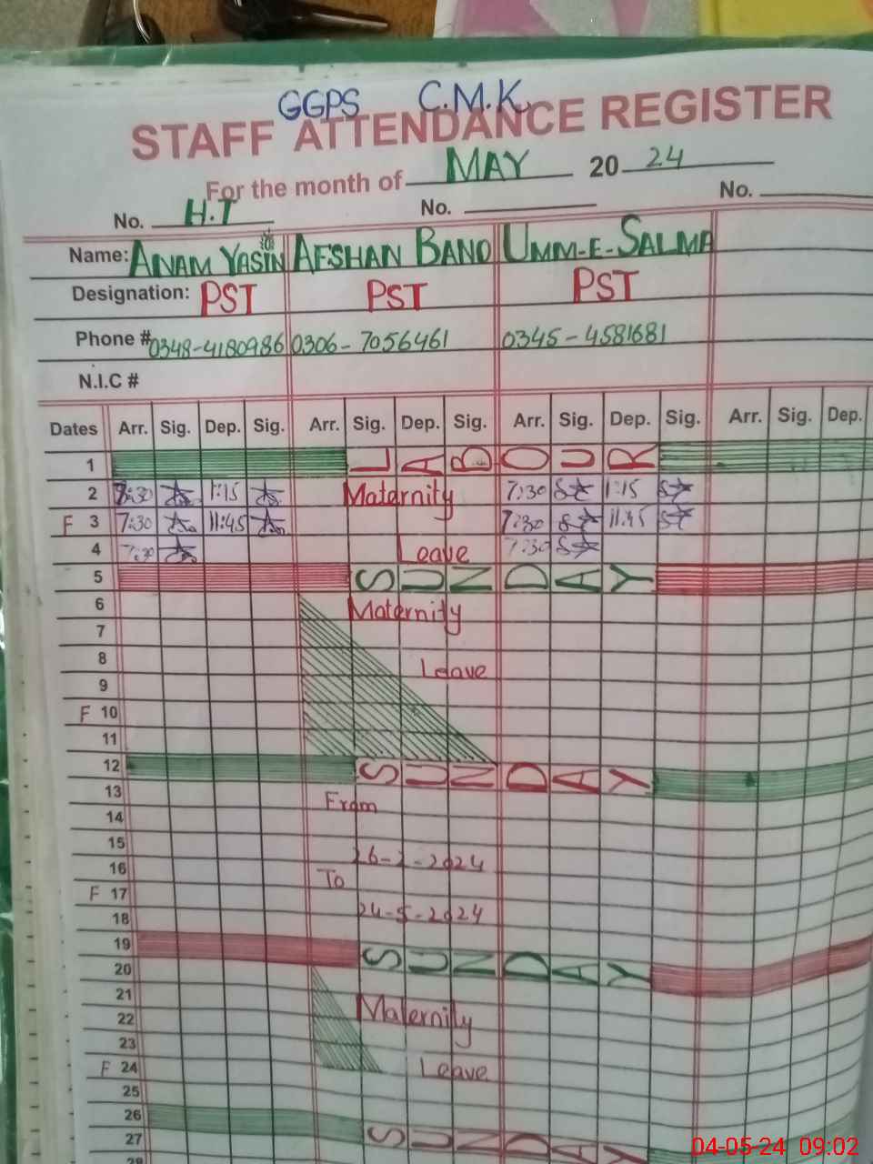| 35**** | Af**** Ba**** | PST | Regular | 0 | 0 | 0 | 0 | 0 | 0 | 0 | 0 | 0 | Maternity |