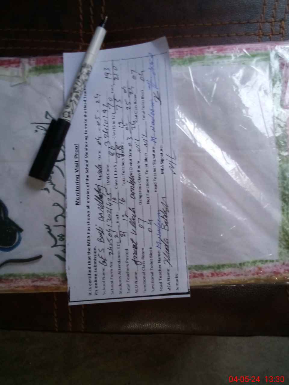 | EMIS Code: 32410192 | Name of School: GES BASTI DHANDLAY WALA | |||