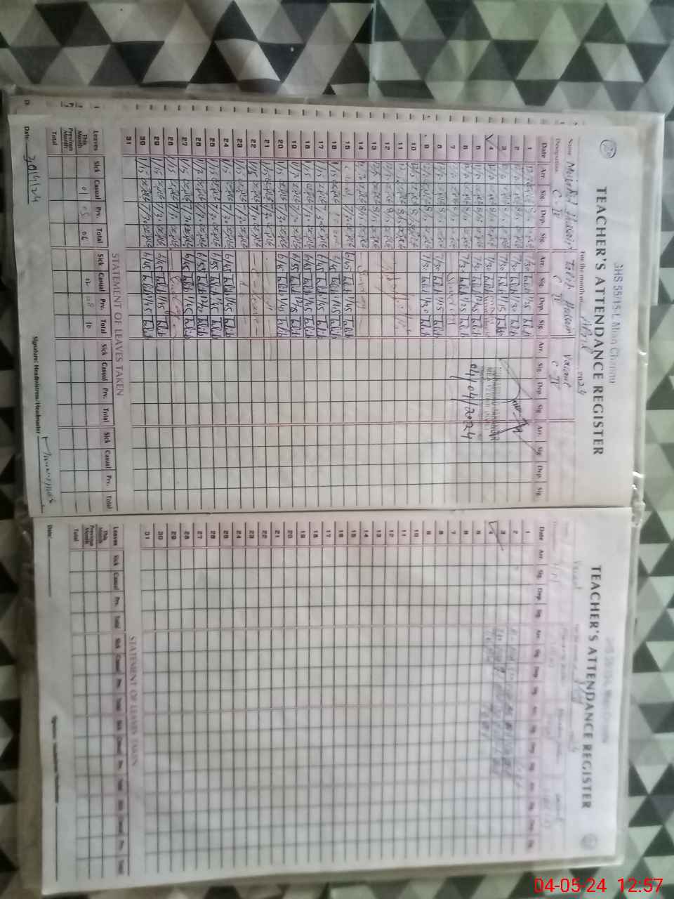 | Remarks (Use Separate Page if Required): NSB and FTF record register not updated for the month of April 2024 and bank account statement also not available | |||||