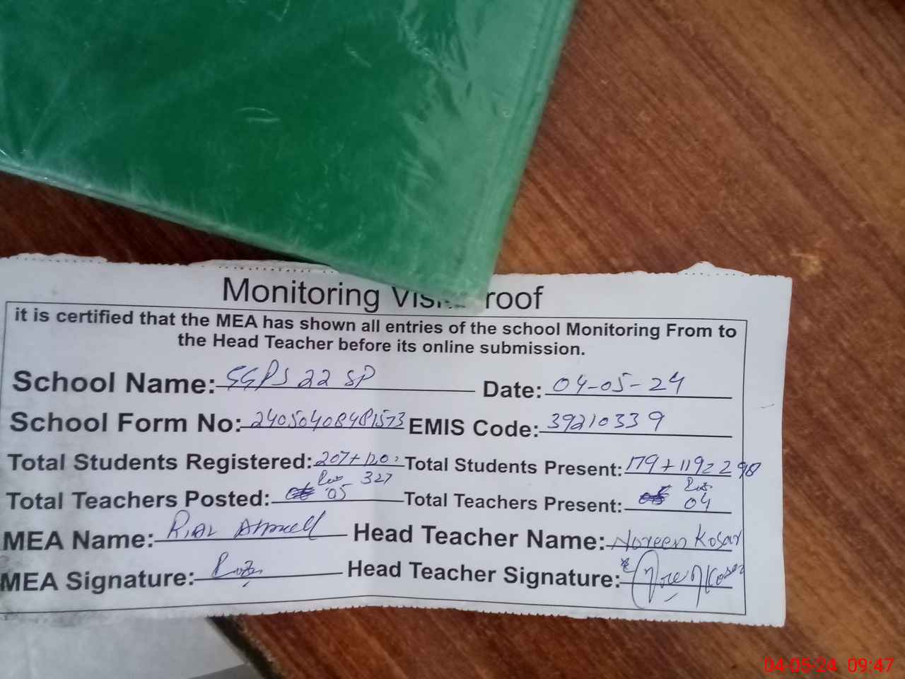 | EMIS Code: 39210339 | Name of School: GGPS 22 SP | |||