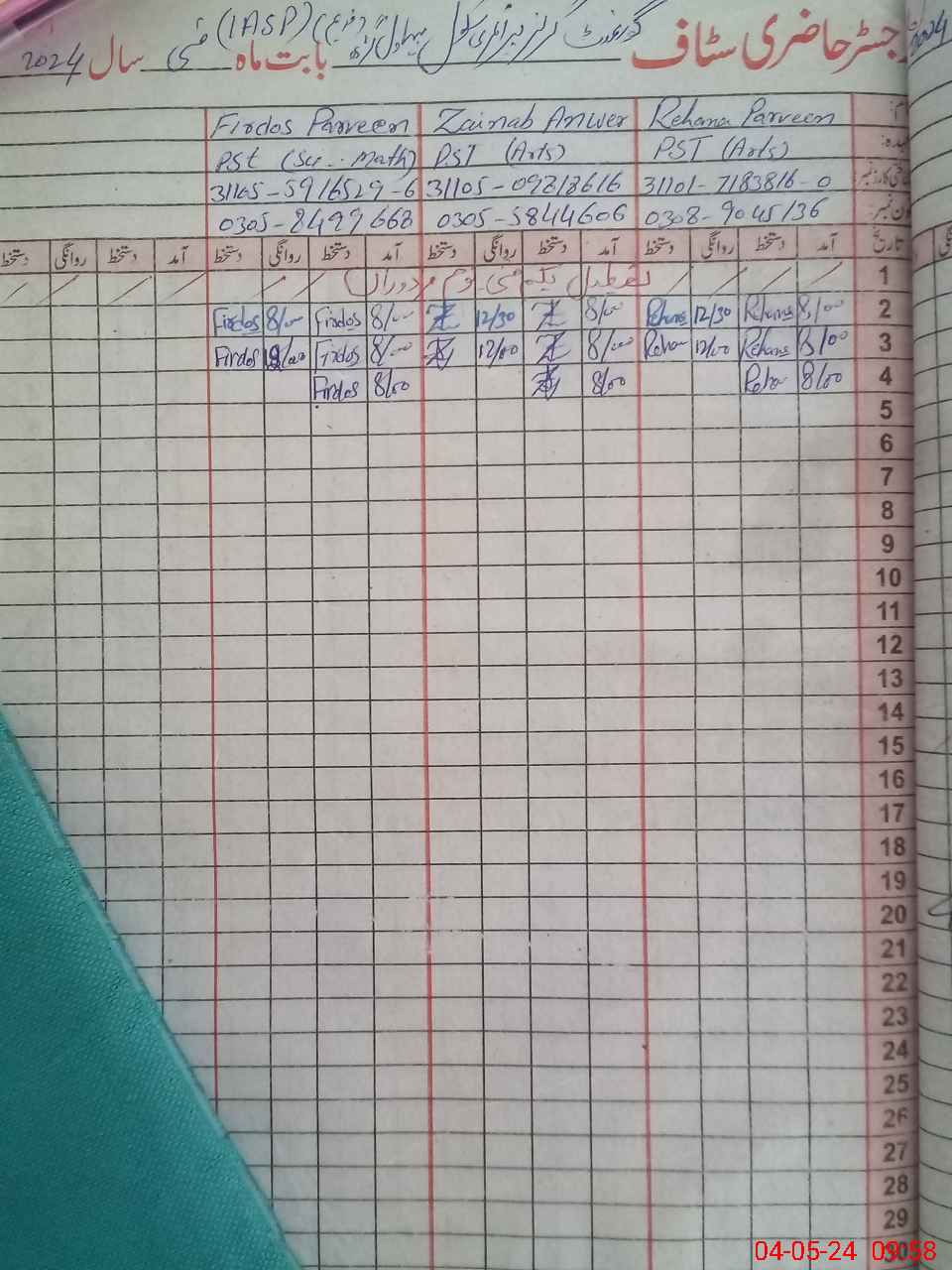 | Name: RE**** PA**** Designation: (School Headmaster's/Headmistress's) PST Phone/Cell Number: 03**** |