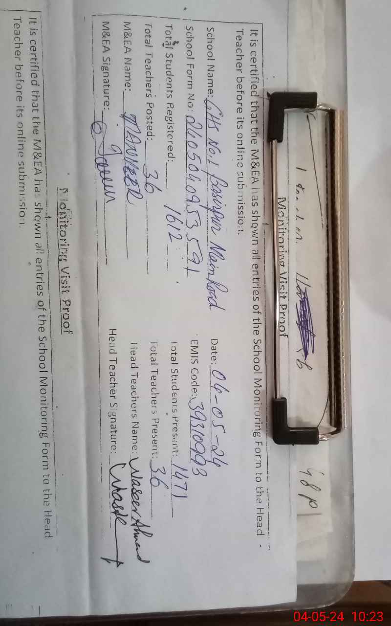 | EMIS Code: 39310993 | Name of School: GHS NO. 1 BASIR PUR MAIN ROAD | |||