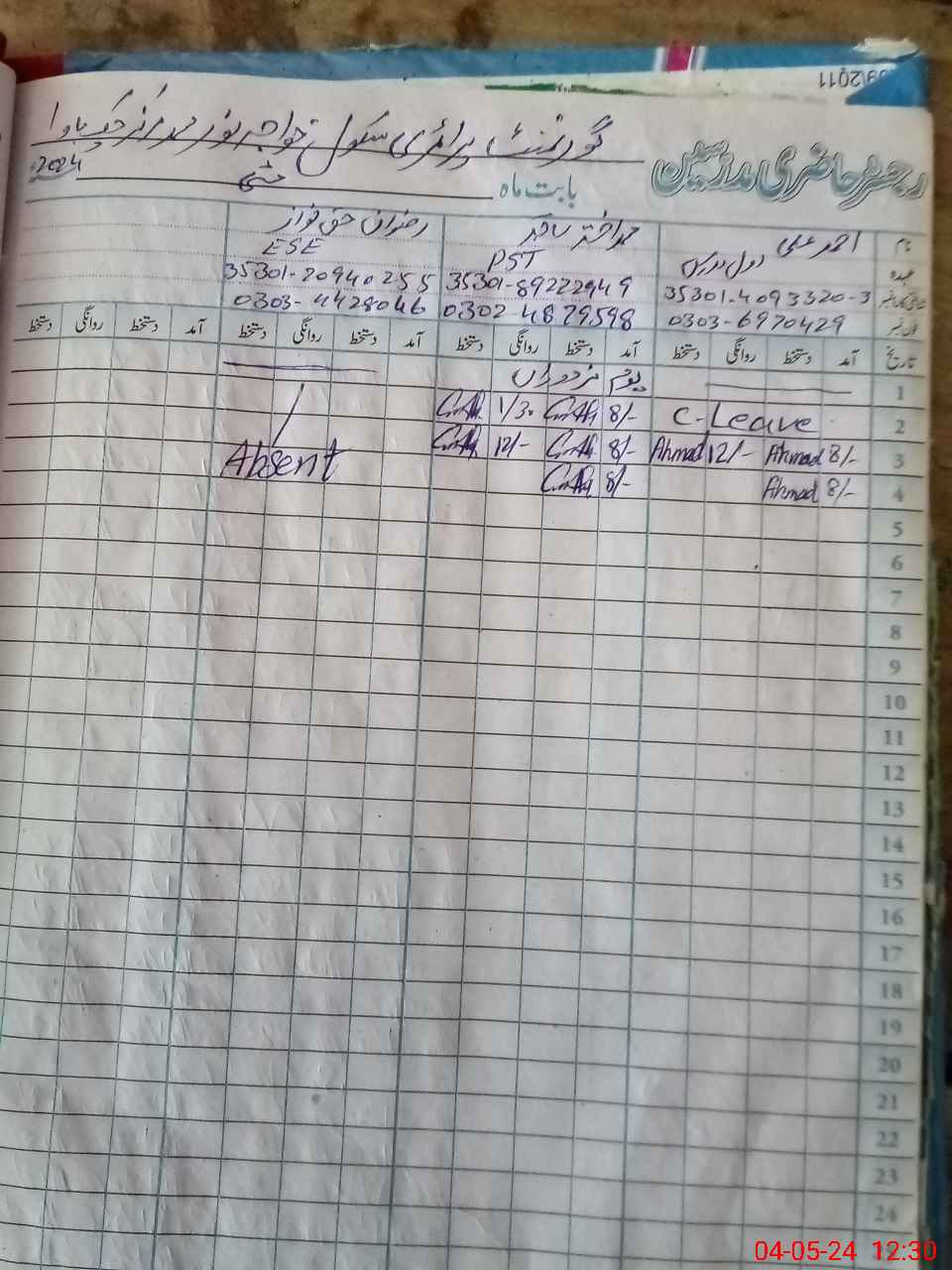 | Name: AH**** AL**** Designation: (School Headmaster's/Headmistress's) PST Phone/Cell Number: 03**** |