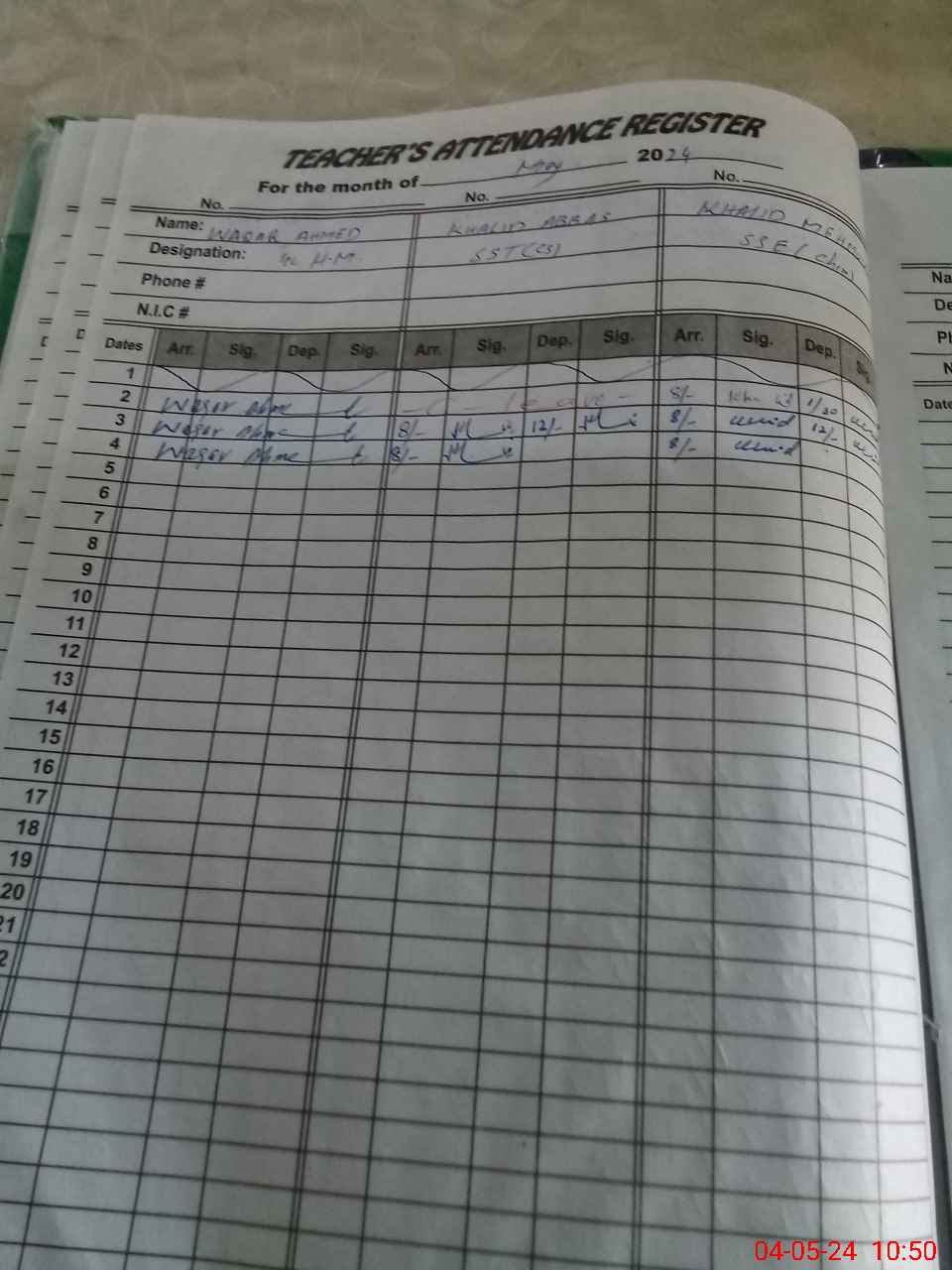 | Name: WA**** AH**** Designation: (School Headmaster's/Headmistress's) S.S.T.(SCIENCE) Phone/Cell Number: 03**** |