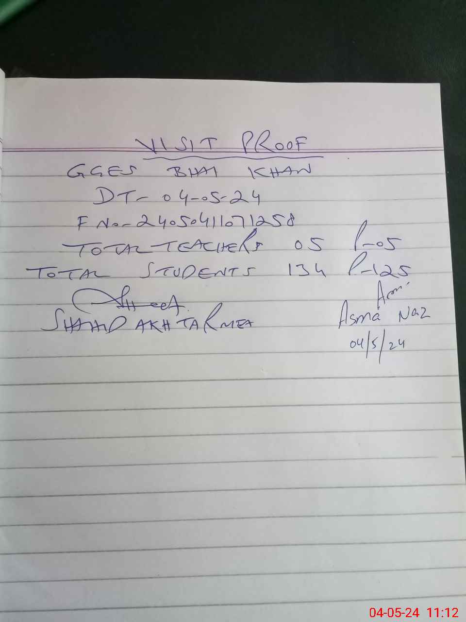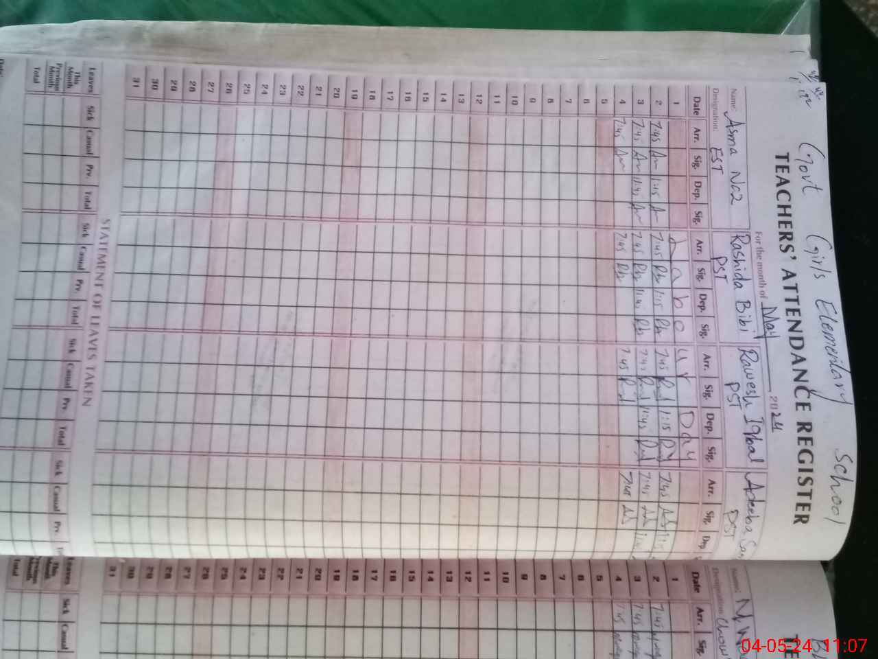 | Attendance Register | Head Teacher | MEA with School | Visit Proof |