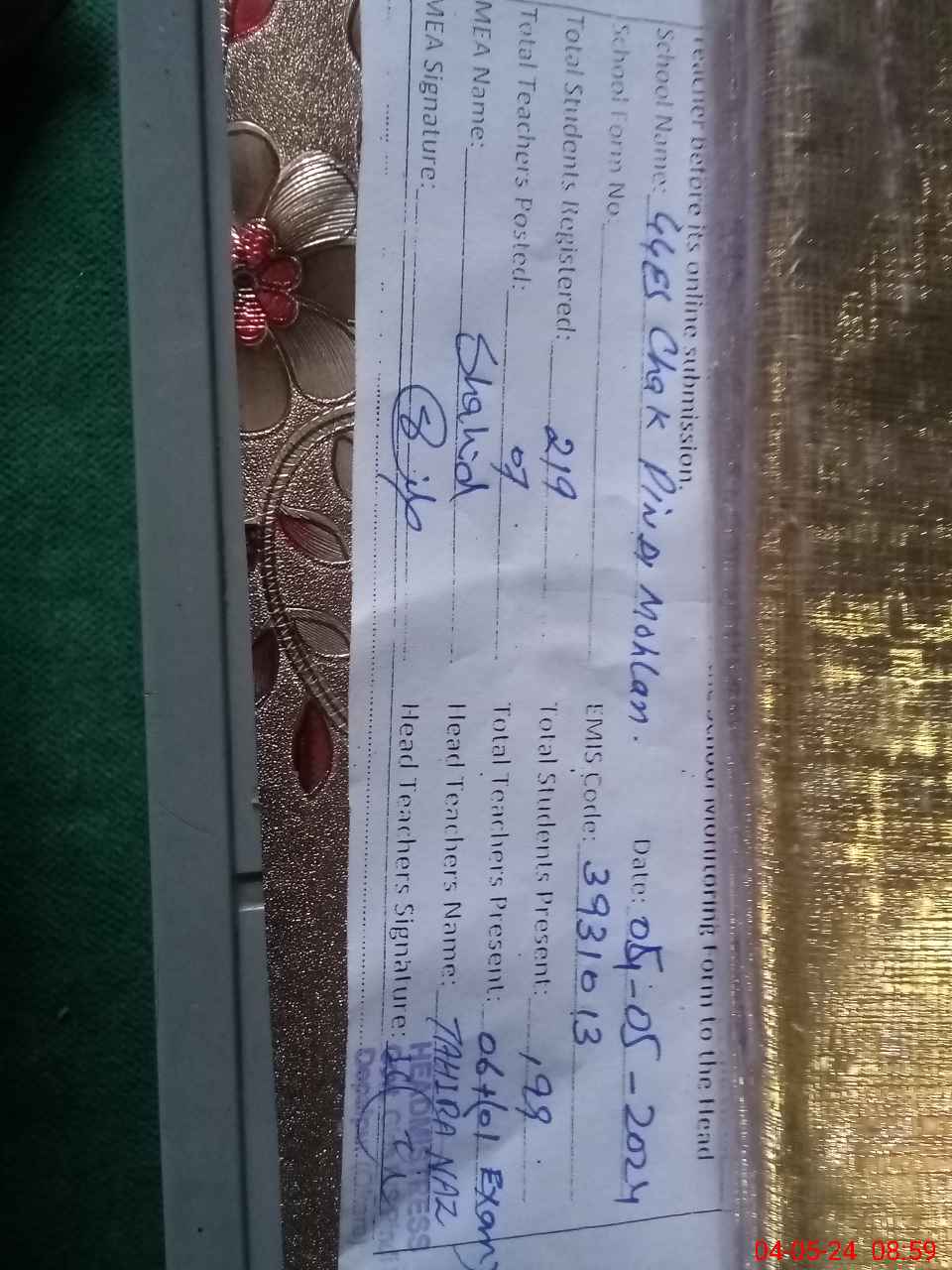| EMIS Code: 39311013 | Name of School: GGES CHAK PINDI MOHLAN | |||