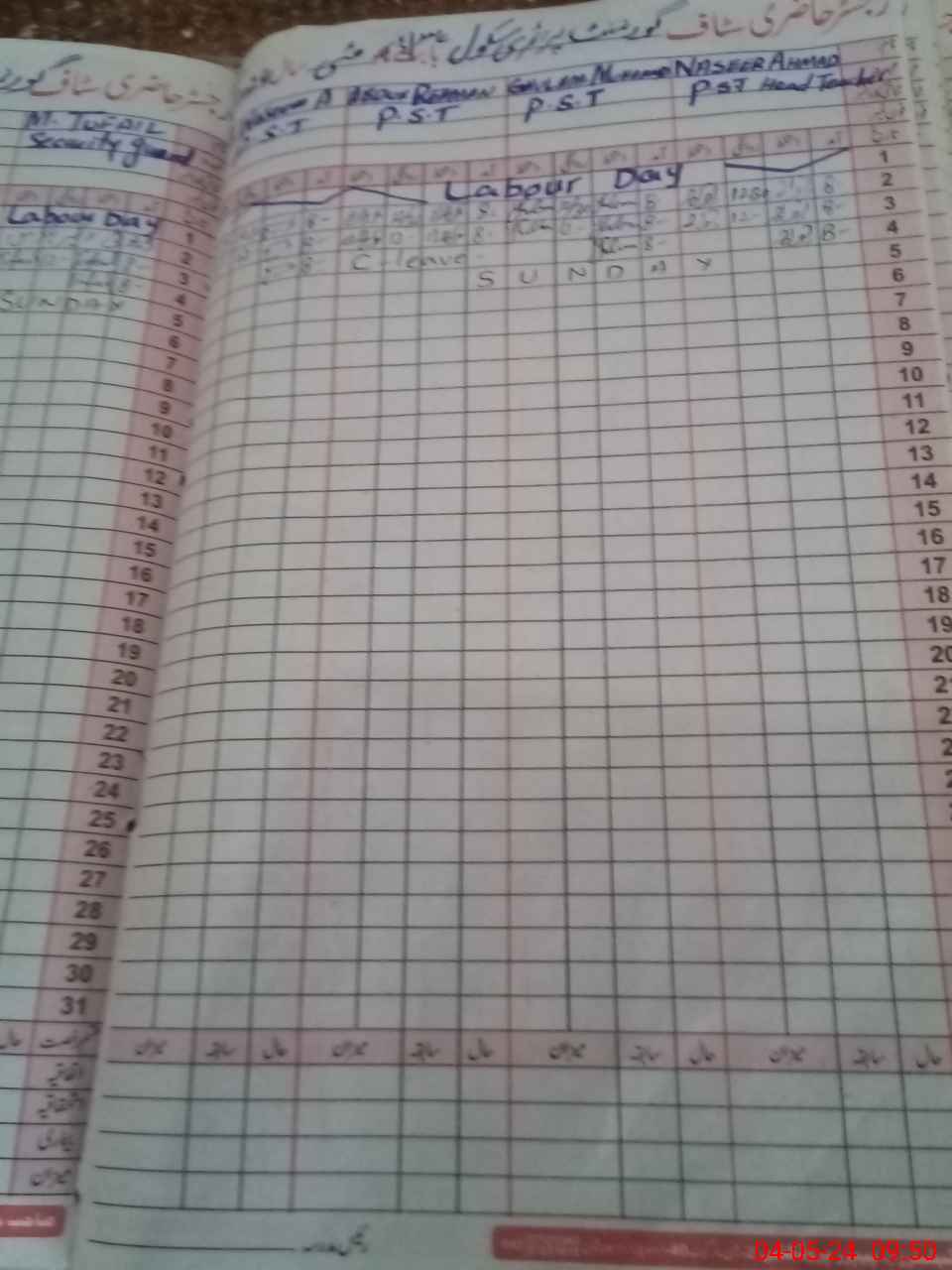 | CNIC | Full Name | Designation | R/C | Absence During Last Calender Month |
