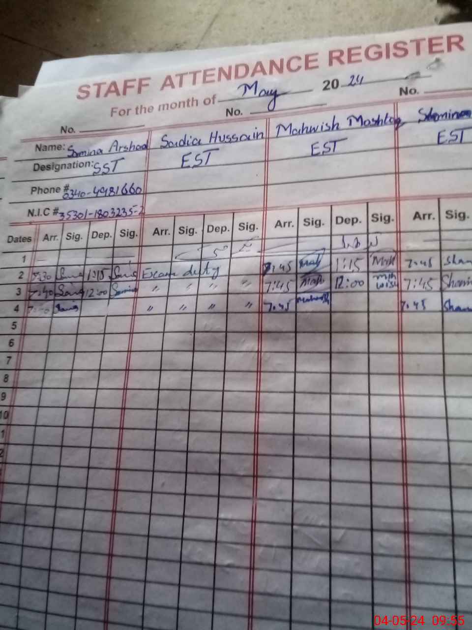 | Name: Sa**** Ar**** Designation: (School Headmaster's/Headmistress's) SST Phone/Cell Number: 03**** |