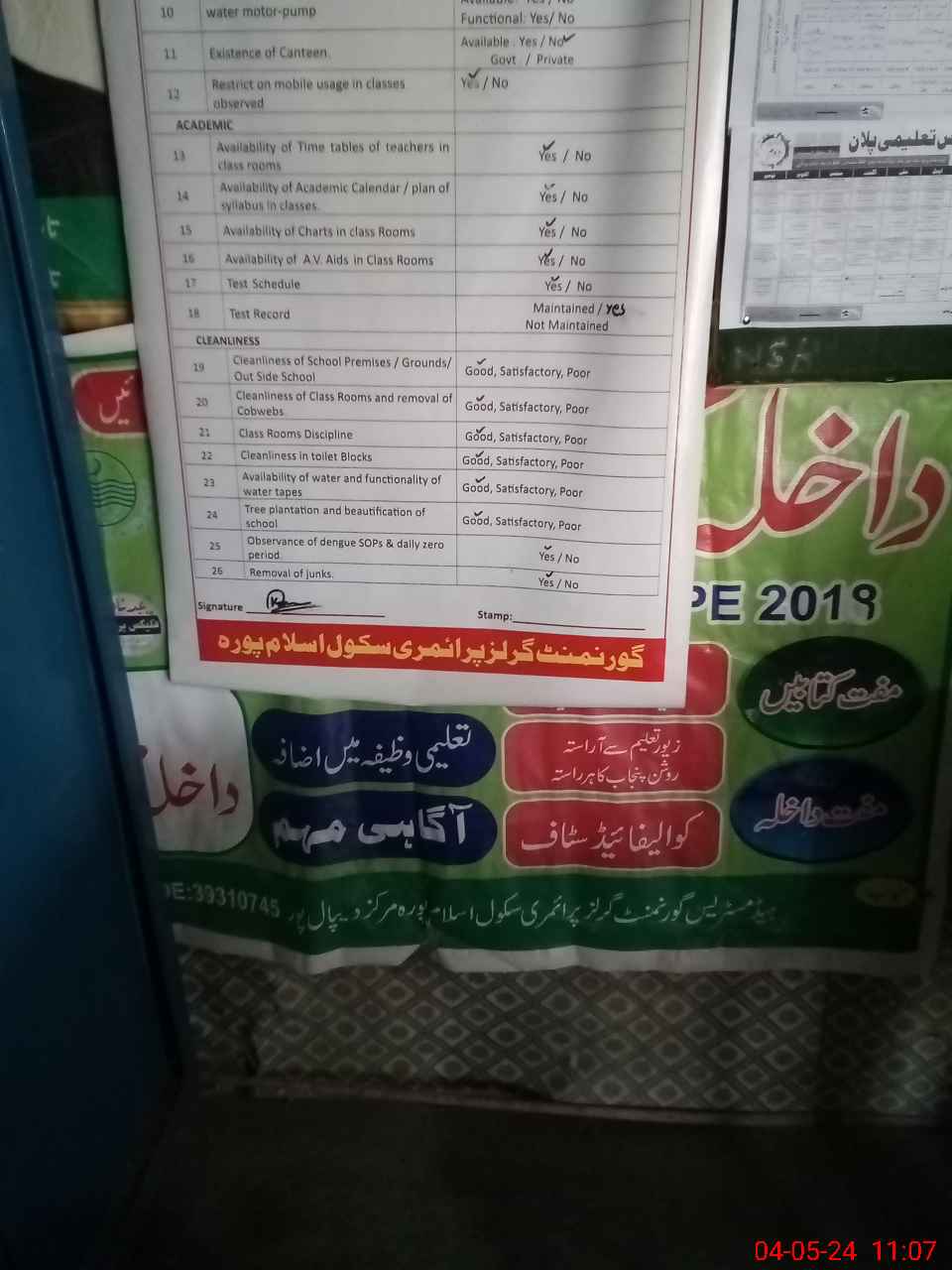 | Certified that this School was Inspected by the Undersigned MEA/DMO Today and the Information Stated Above is as Per Record. | |||||