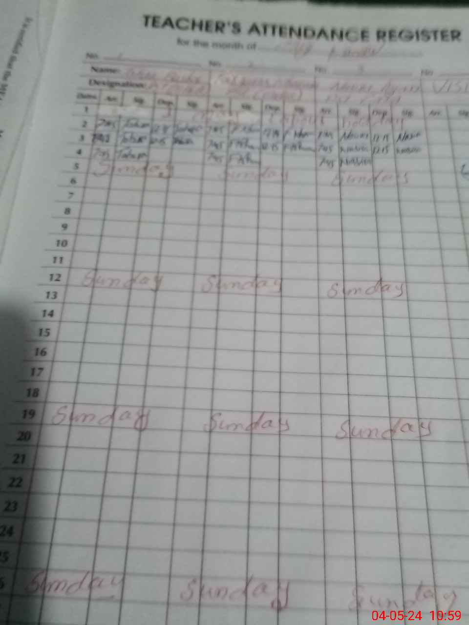| CNIC | Full Name | Designation | R/C | Absence During Last Calender Month |