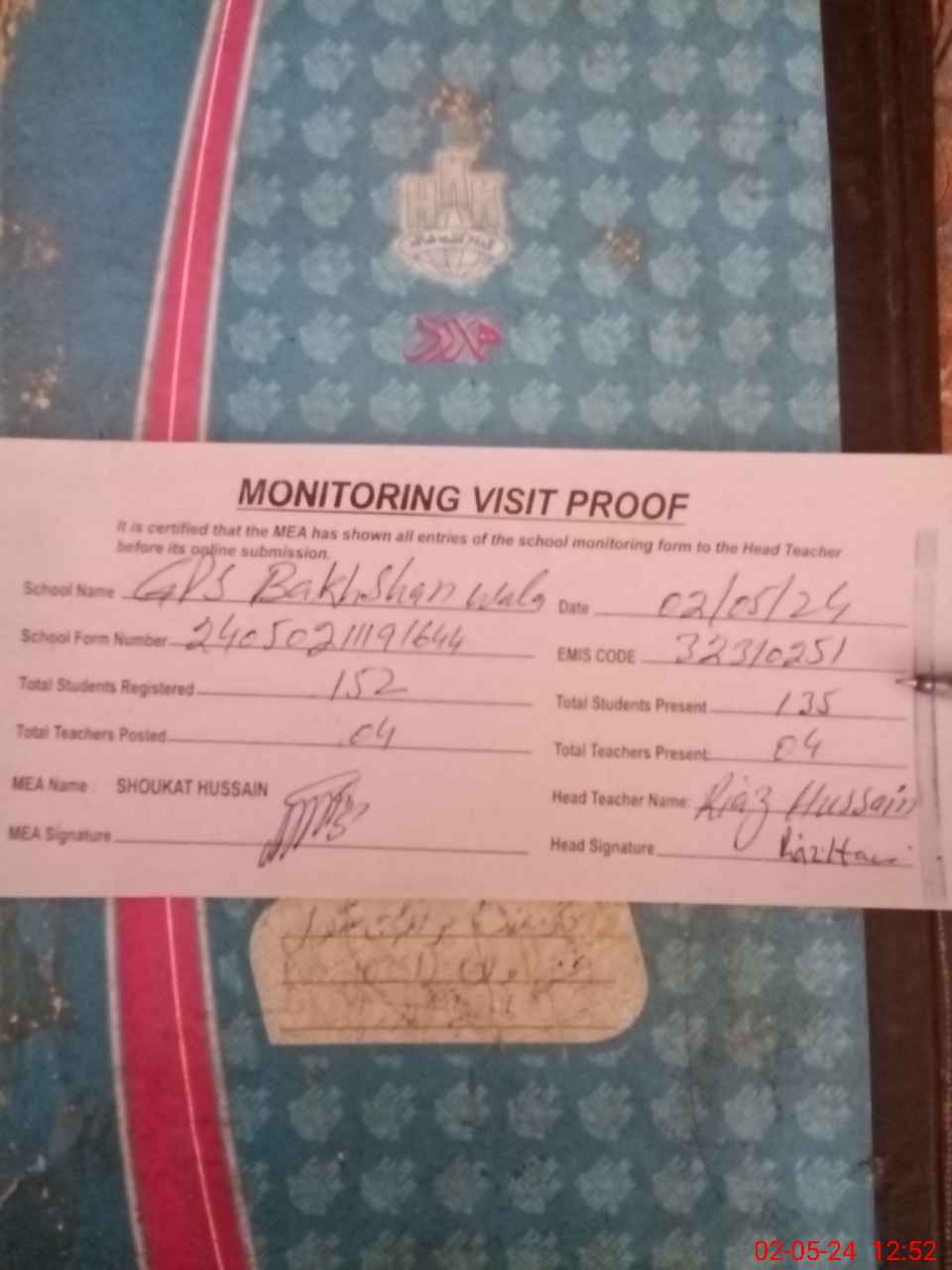 | EMIS Code: 32310251 | Name of School: GPS BAKHSHAN WALA | |||