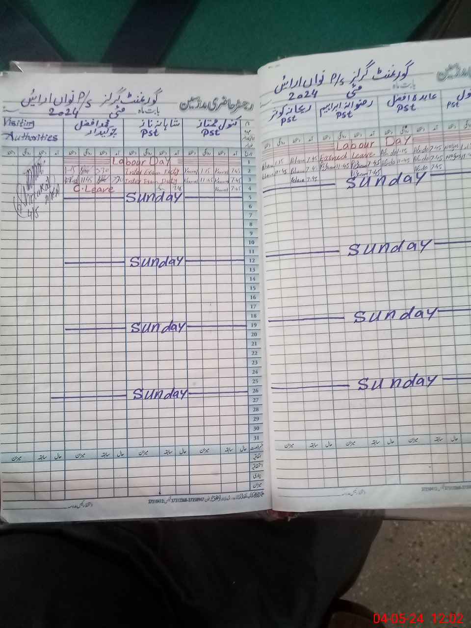 | Leave | Duty | Absent | Maternity | Medical | Ex- Pak |