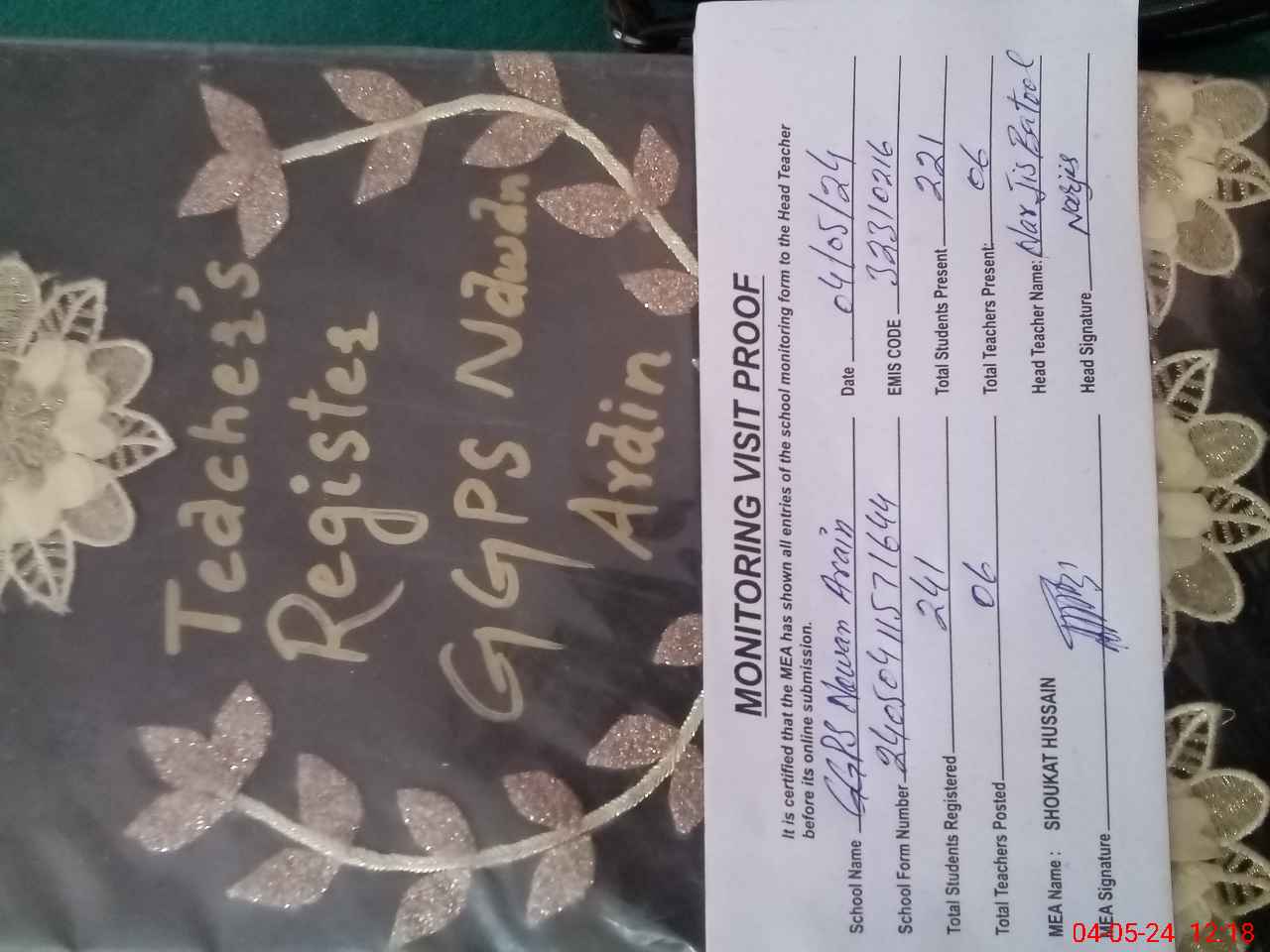 | Attendance Register | Head Teacher | MEA with School | Visit Proof |