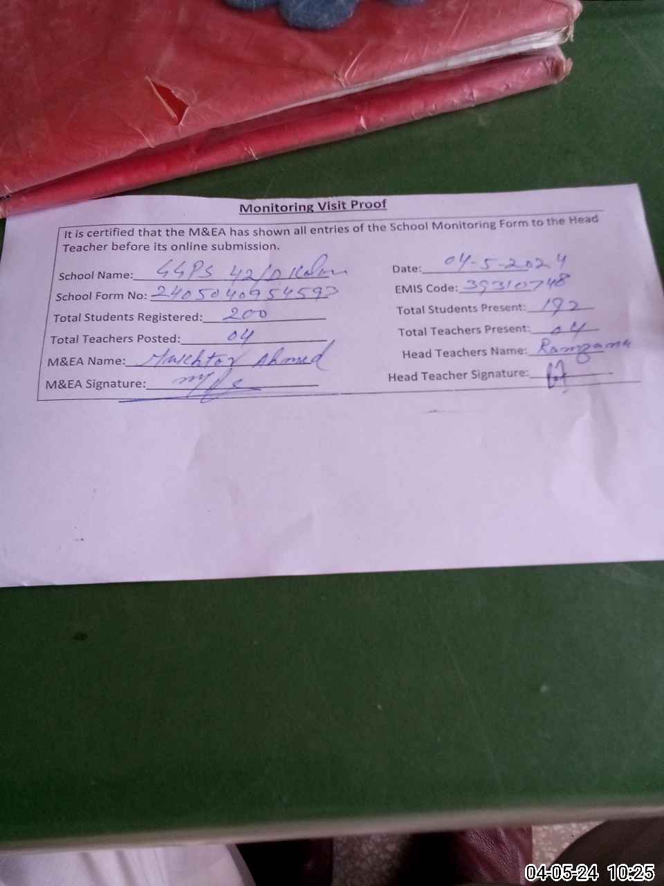 | EMIS Code: 39310748 | Name of School: GGES 42/D KALAN | |||