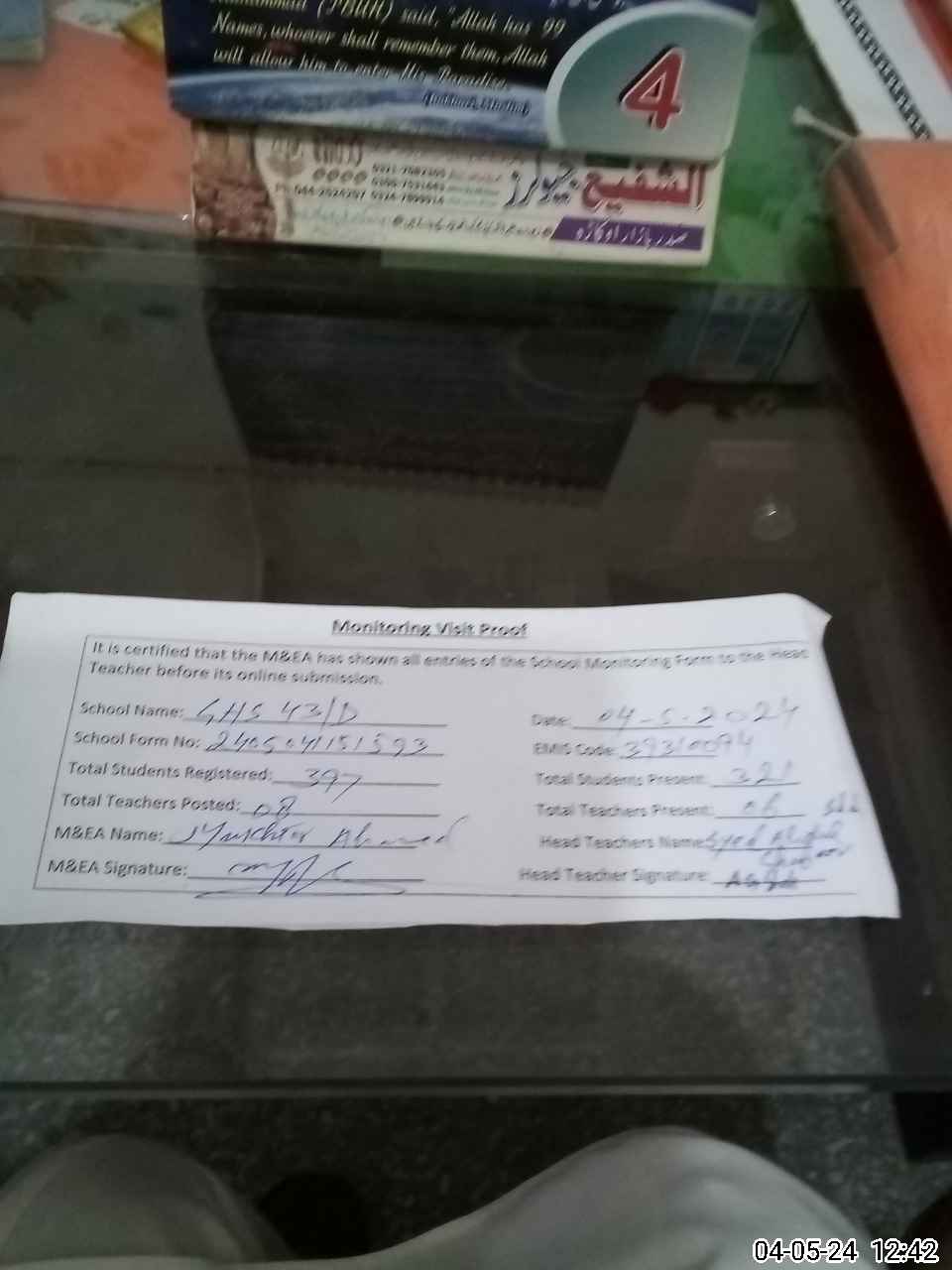 | EMIS Code: 39310094 | Name of School: GHS CHAK 43-D KALAN | |||