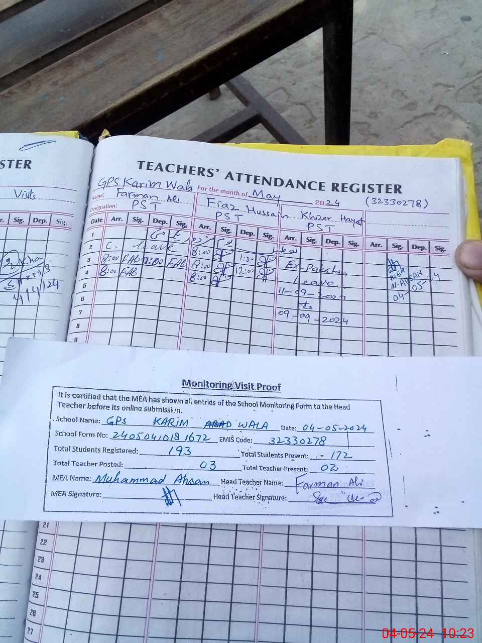 | EMIS Code: 32330278 | Name of School: GPS KARIM WALA | |||
