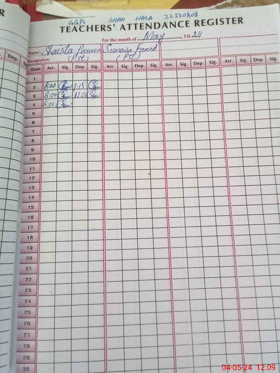 | EMIS Code: 32330808 | Name of School: GGPS SHAH WALA | |||
