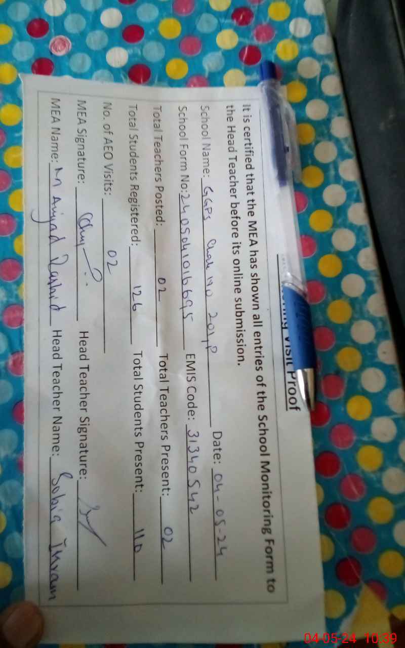| EMIS Code: 31340542 | Name of School: GGPS CHAK NO 201/P | |||