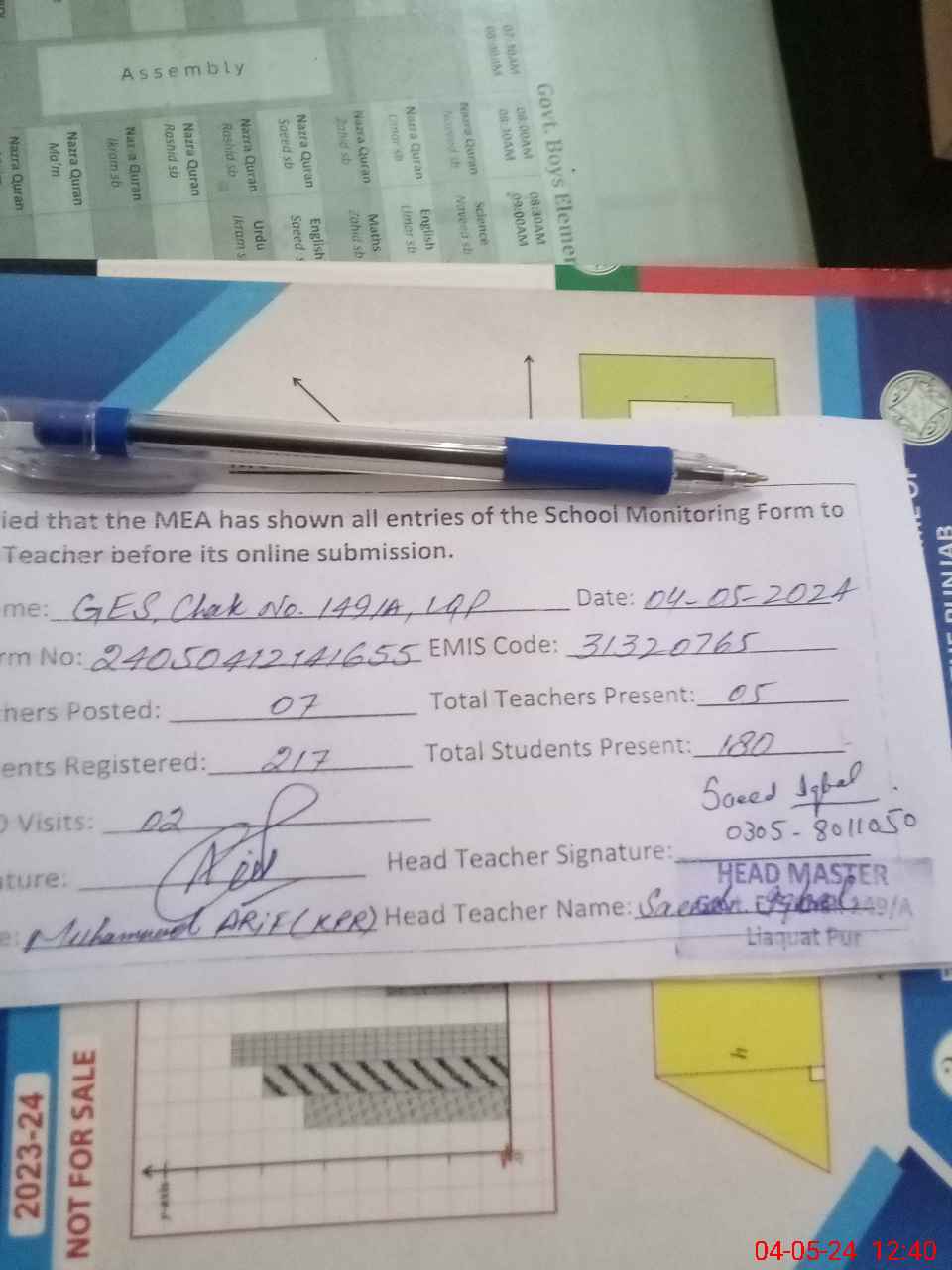 | EMIS Code: 31320765 | Name of School: GES CHAK NO. 149/A | |||